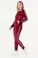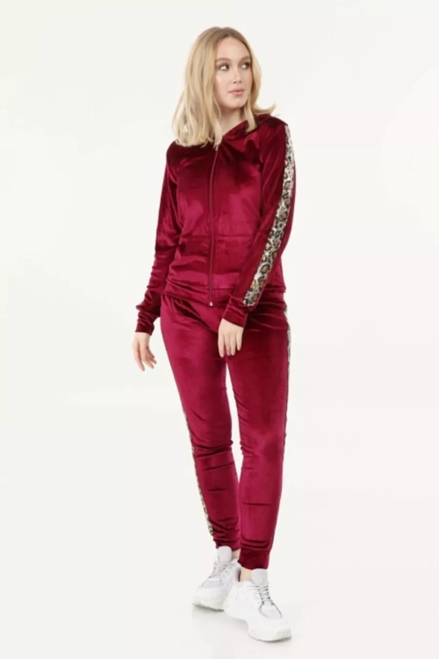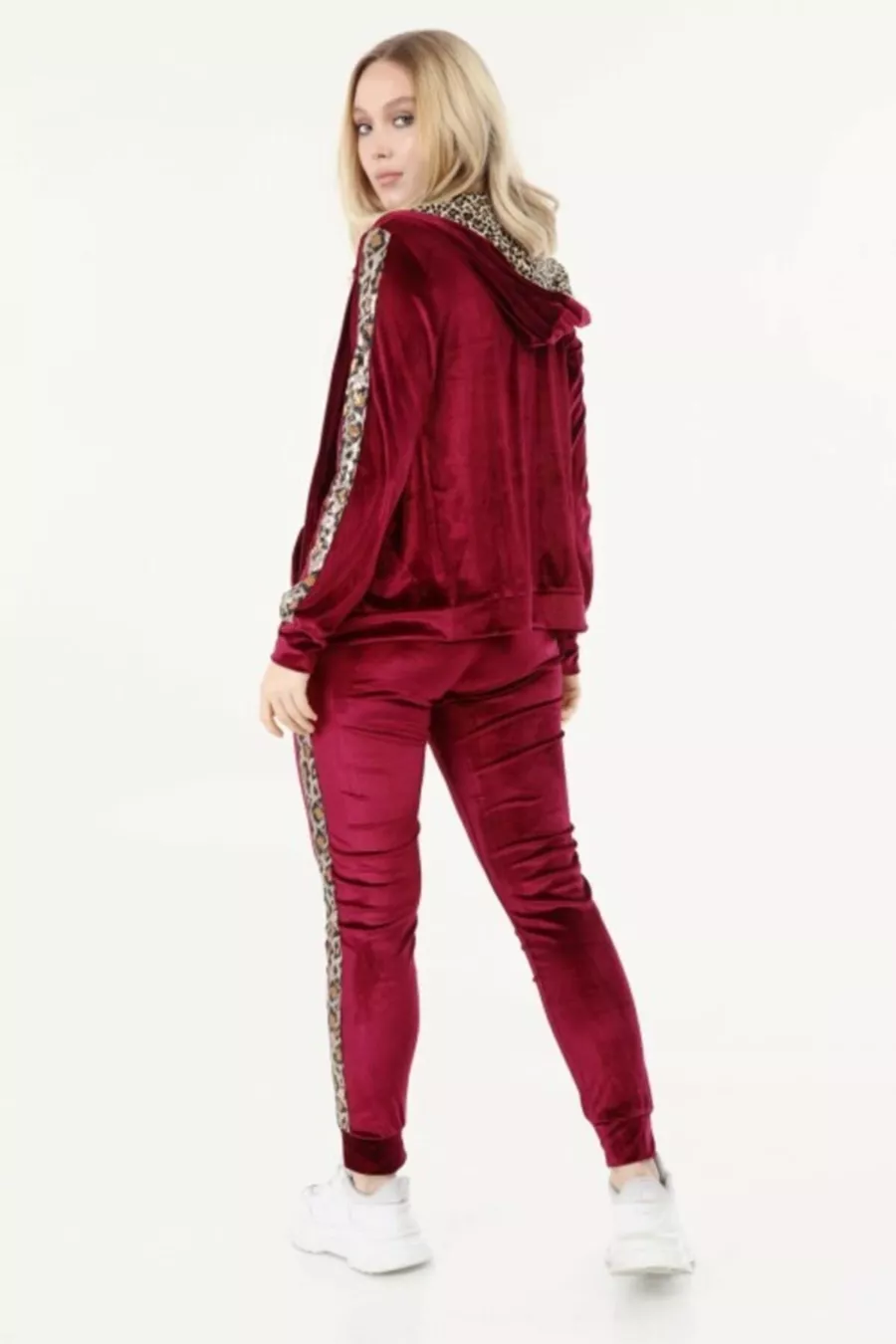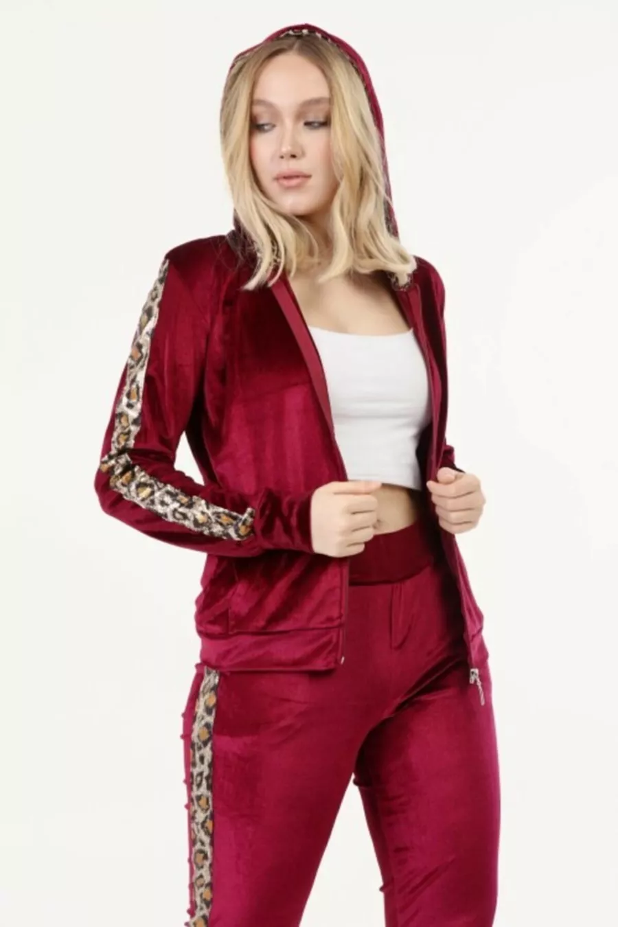 Material: Velvet Closure Type: Zipper Leg Length: Long Leg Type: Elastic Hem Sleeve Type: Long Sleeve Fit: Regular Color: Burgundy Sleeve Length: Long Pattern: Leopard Pocket: Double Pocket Package Contents: 2-piece Fabric Type: Woven Weave Type: Velvet Sustainability Detail: No Persona: Fashion Forward Waist: Regular Waist Occasion: Casual Length: Standard Silhouette: Basic Neckline Type: Hooded Washing Instructions: T01 Season: Winter Origin: TR
