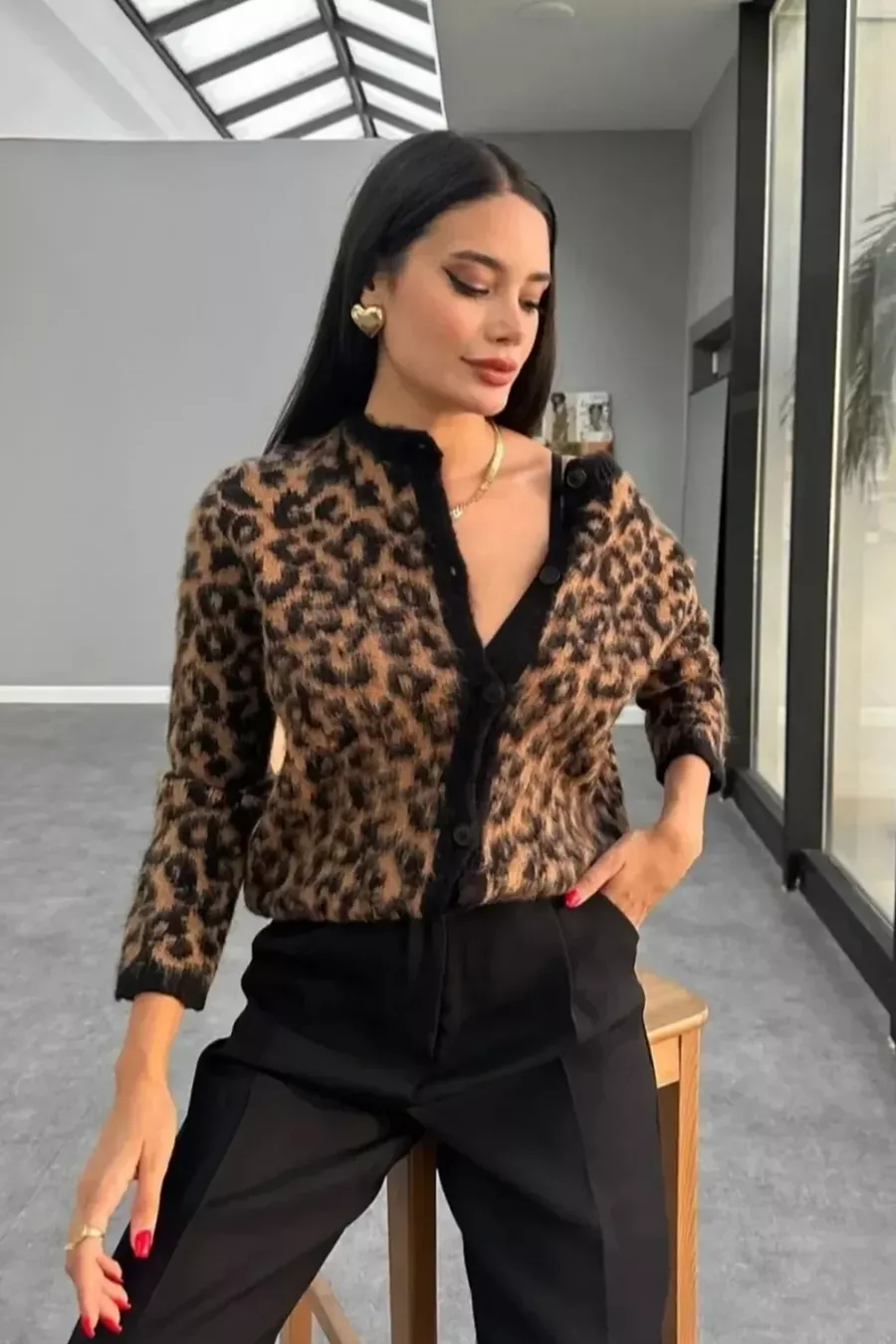 Material: Woolen Sleeve Type: Long Sleeve Pattern: Leopard Fit: Regular Color: Brown Fabric Type: Knit Neck Type: Zip Neck Product Detail: Buttoned Product Type: Plain Pocket: No Pocket Sleeve Length: Long Collection: Eco-friendly Thickness: Medium Length: Regular Silhouette: Slim Occasion: Trend Additional Feature: Eco-friendly Print/Embroidery Technique: No Print Closure Type: Buttoned Number of Pieces: 1 Persona: Cool & Comfort Sustainability Detail: No Weave Type: Soft Belt/Band Status: No Belt Material Component: Knit Washing Instructions: 30°C Season: All Seasons Origin: TR Box Status: No Box