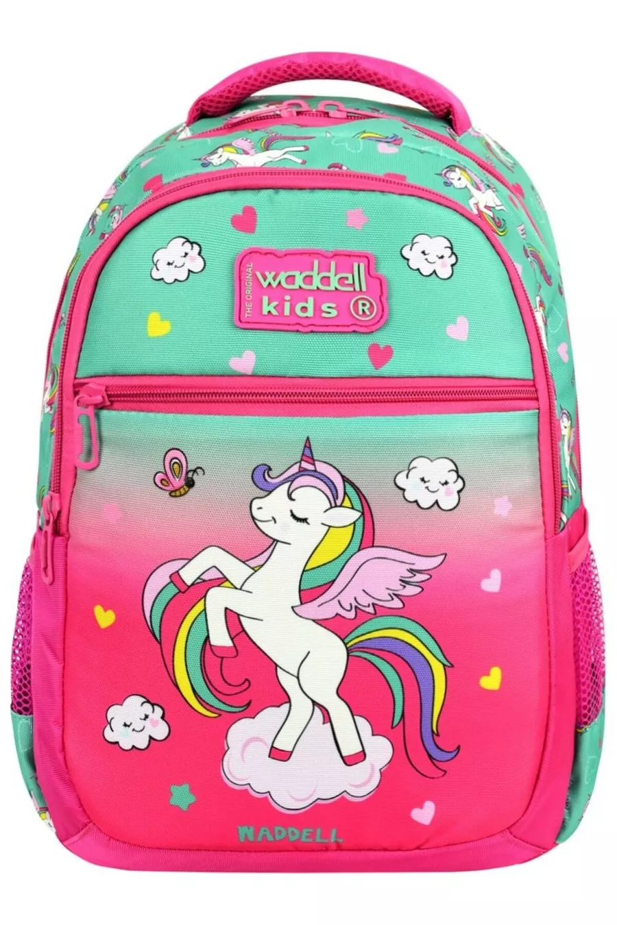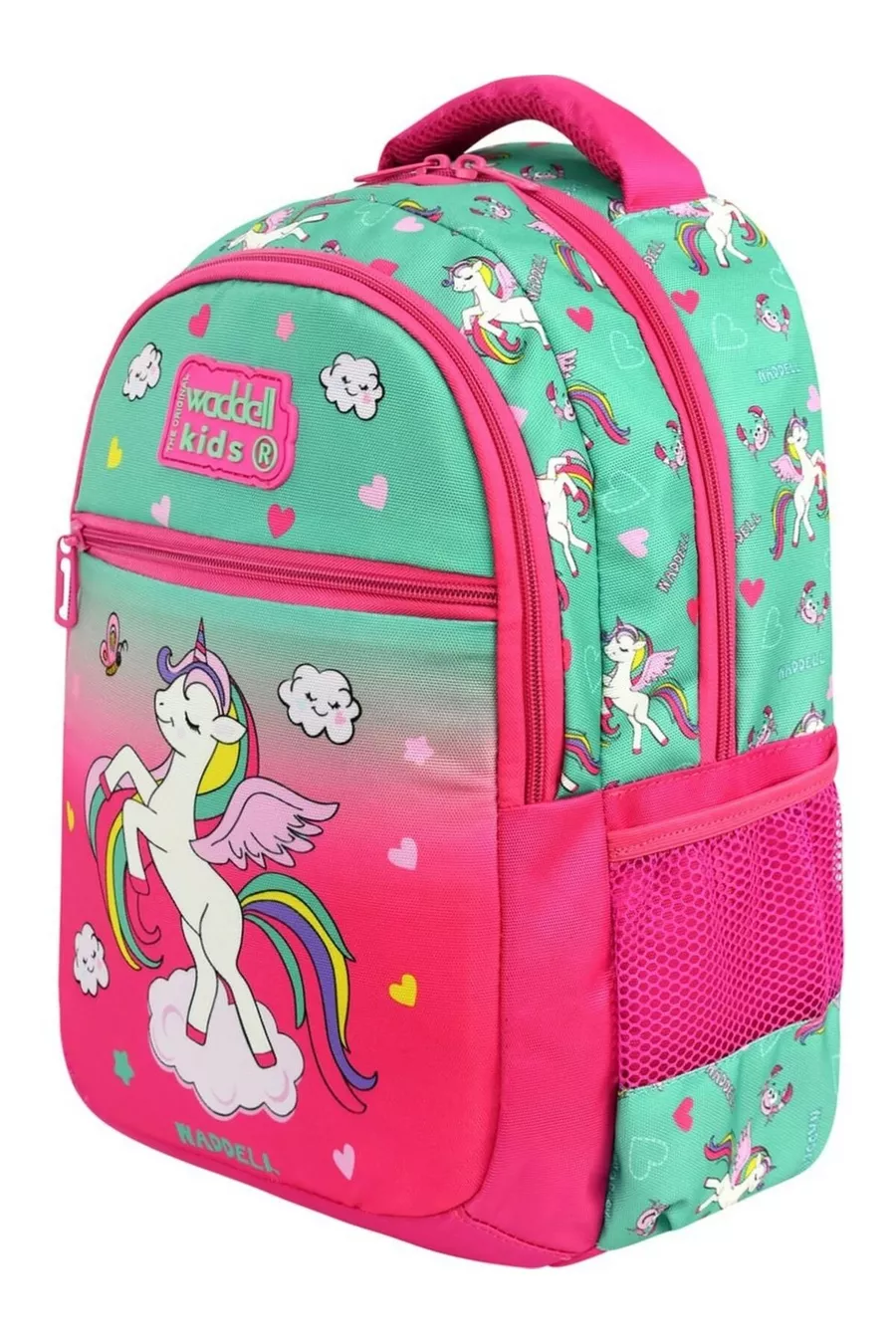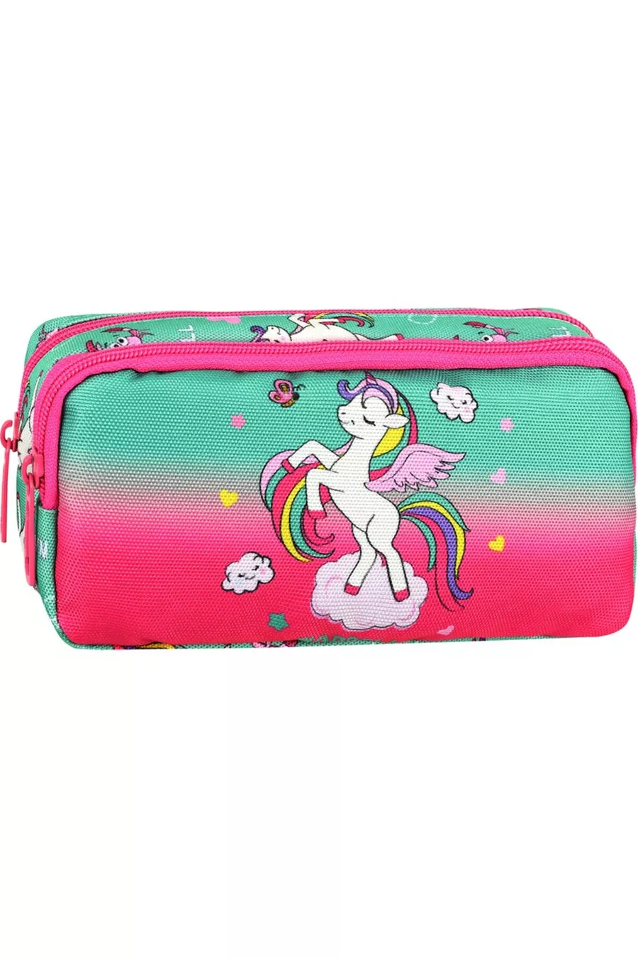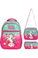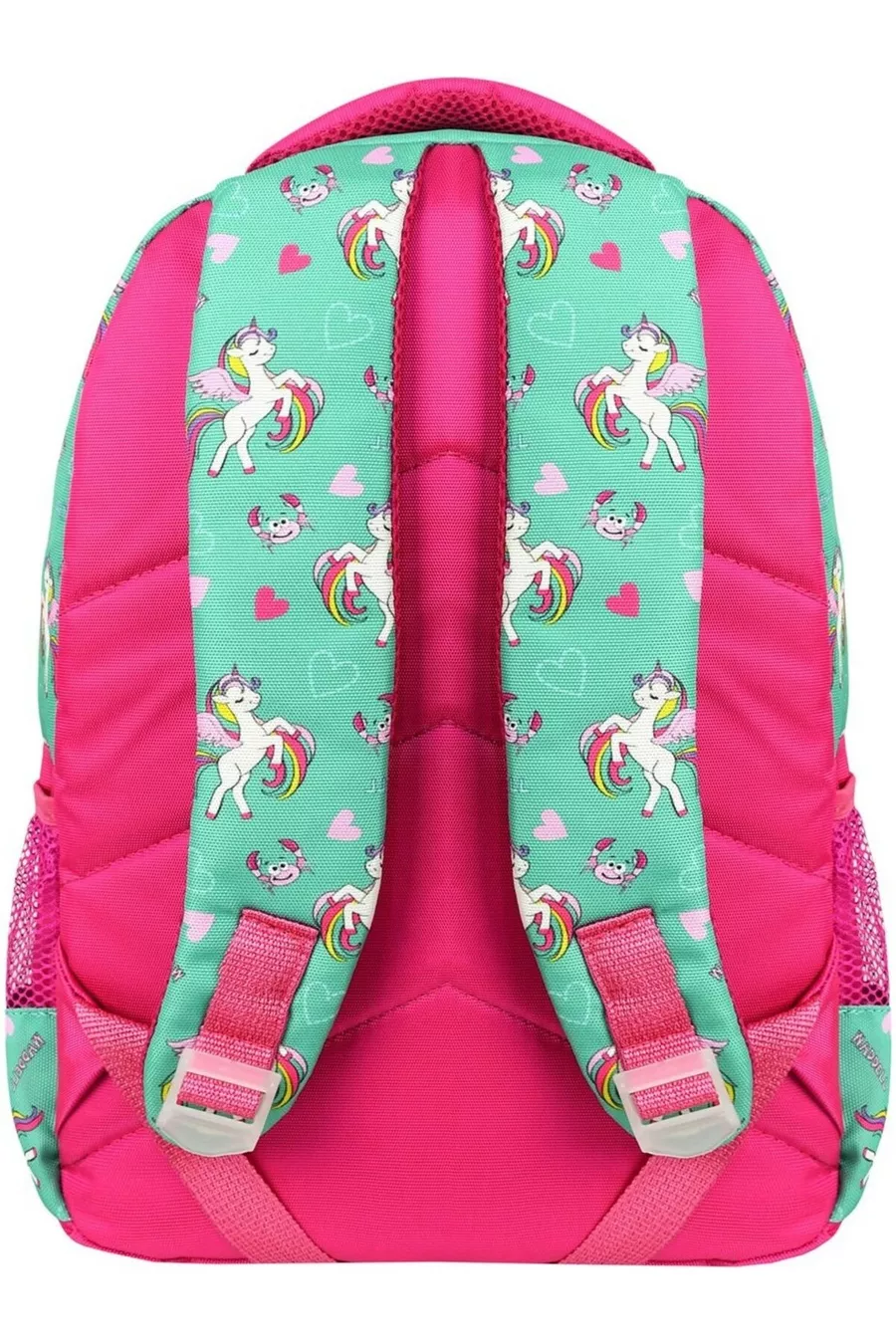 Licensed Mint Green-Fuchsia Unicorn Pattern Girls' Primary School Backpack, Lunch Bag, and Pencil Case