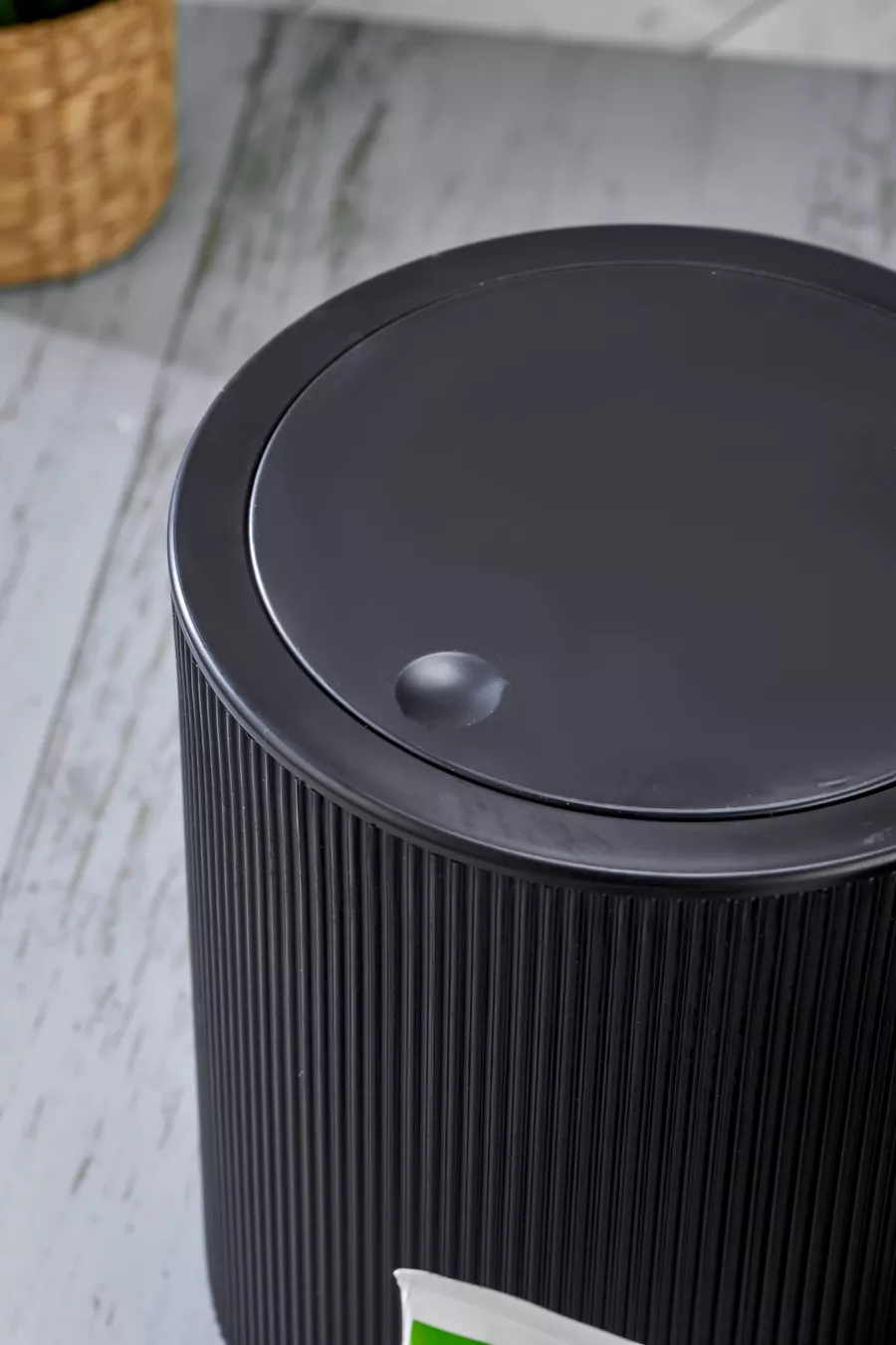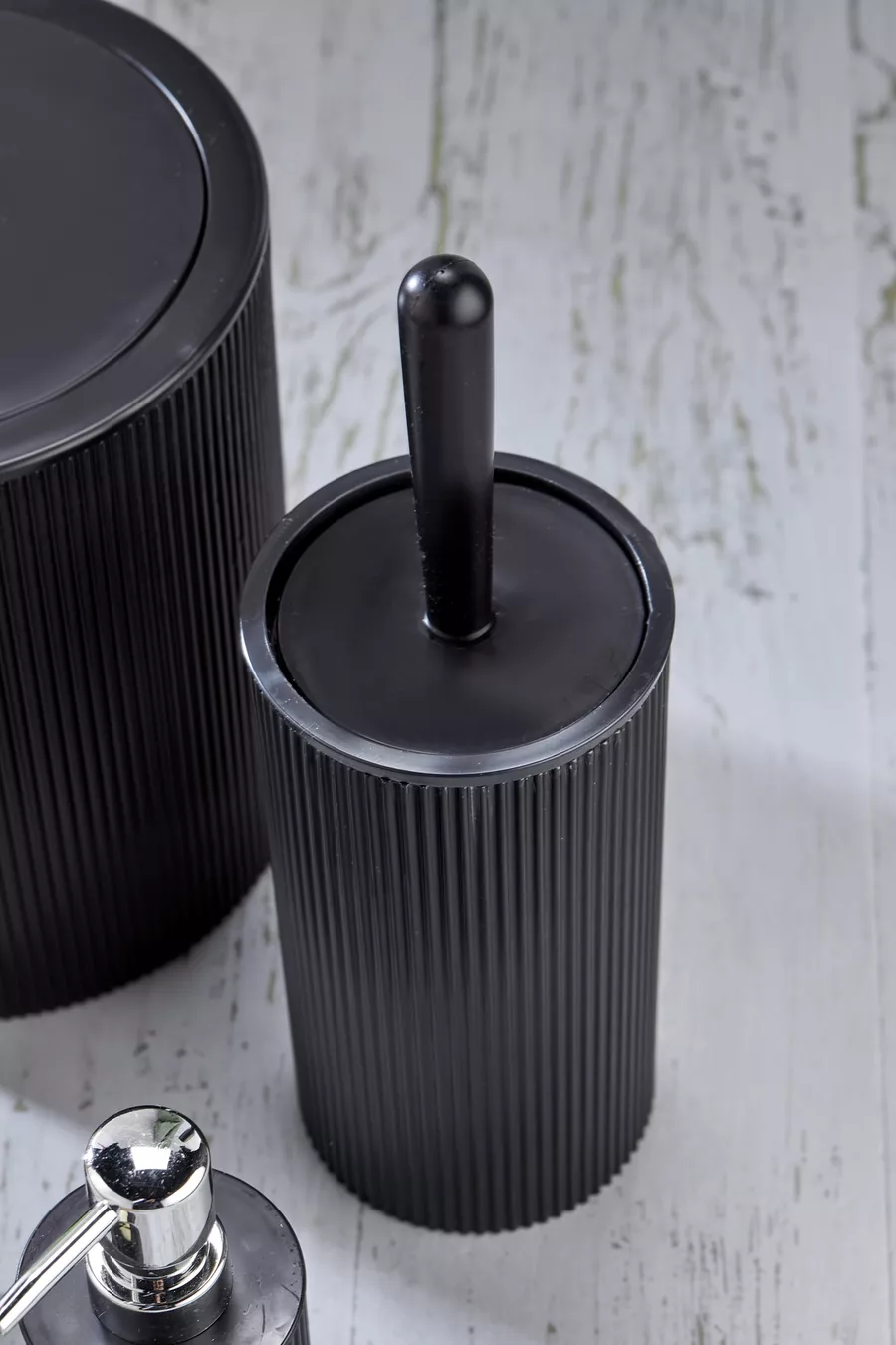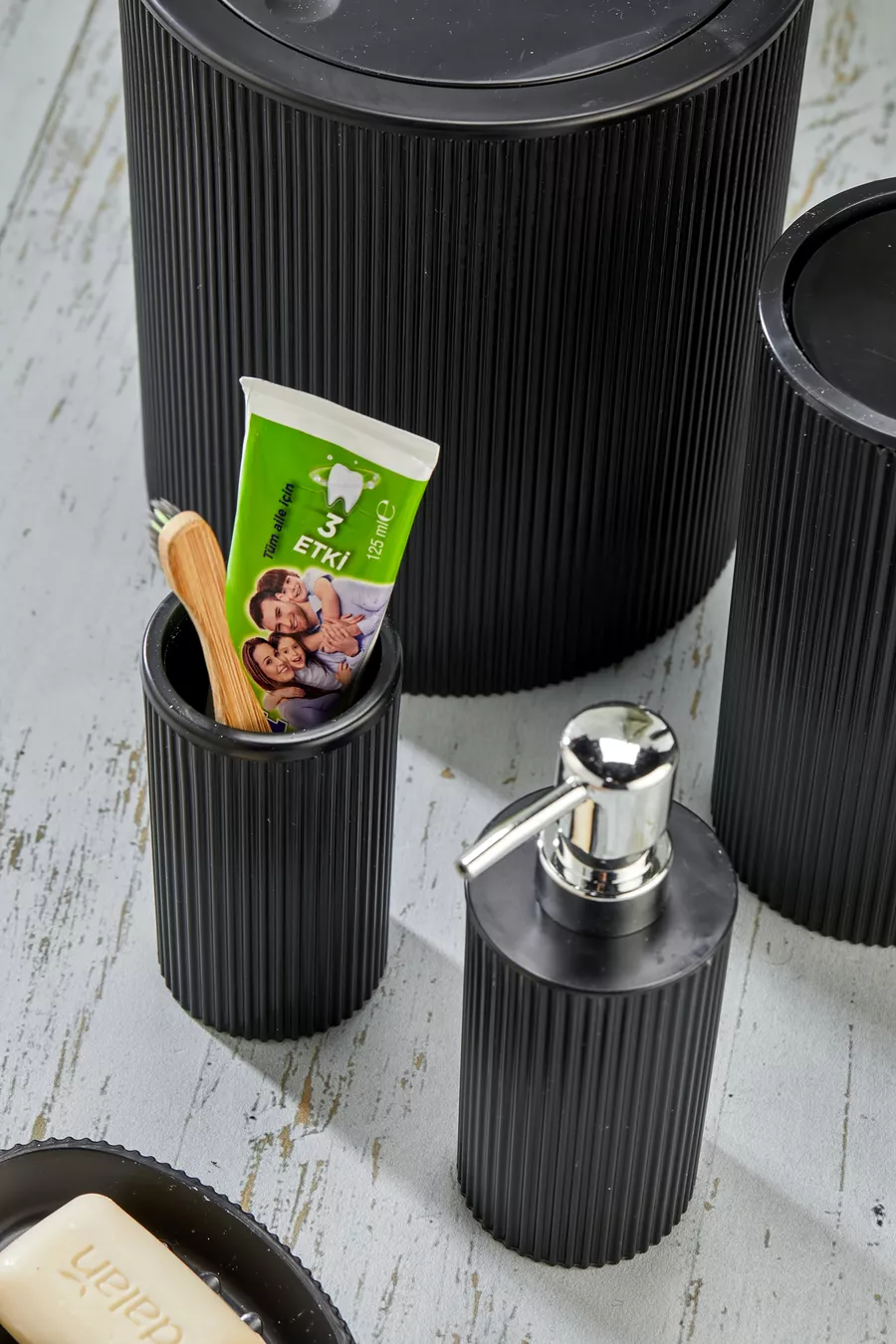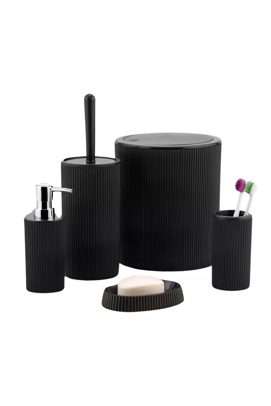 Line 5 Round Bathroom Set - Trash Can, Toilet Brush, Liquid-Solid Soap Dispenser, Toothbrush Holder
