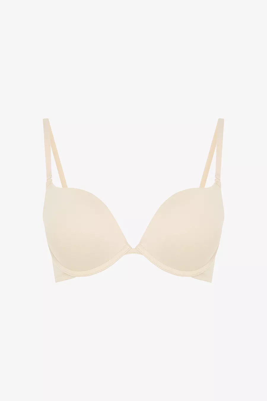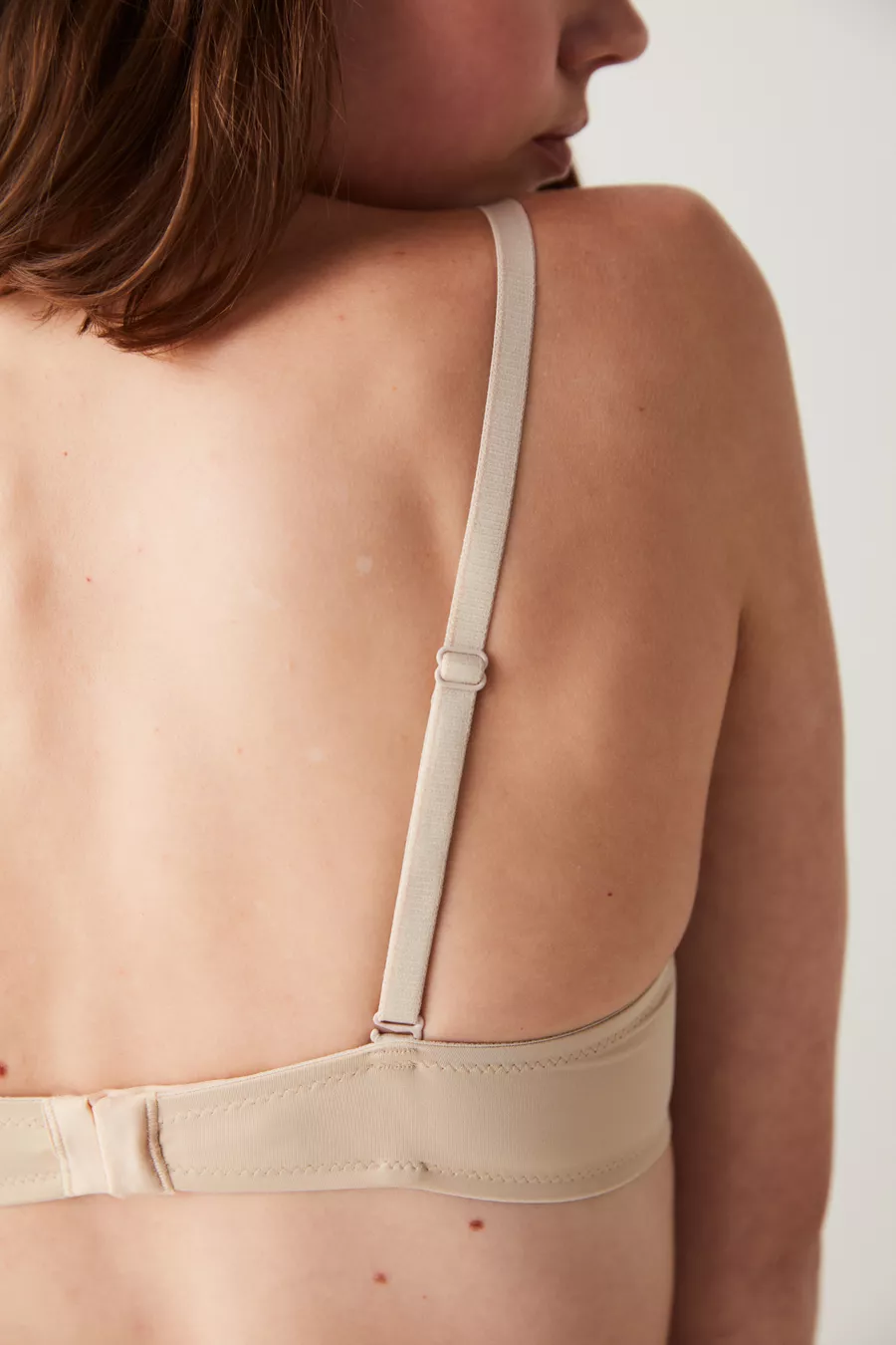 Sustainability Detail: Recycle+Organic Material: Nylon Size: 178 Fit: Underwire Sleeve Length: Strap Color: Beige Package Contents: Single Product Detail: Elastic Pattern: Plain Product Type: Plain Cup: Non-padded Collection: Lingerie Neckline Type: Strap Neckline Fabric Type: Woven Weave Type: Seamless Persona: Fashion Forward Additional Feature: Push up Silhouette: Balconette Material Composition: 80% Polyamide, 20% Elastane Setting: Casual/Daily Top Silhouette: Balconette Washing Instructions: Hand wash recommended Origin: FR Box Condition: No box Closure Type: Snap Number of Pieces: 1