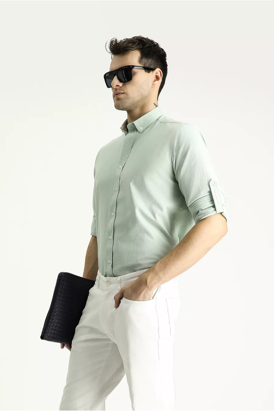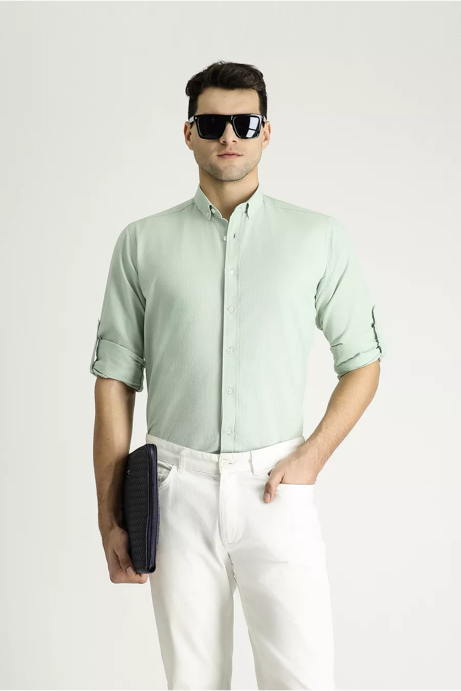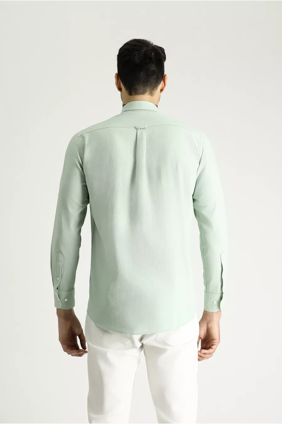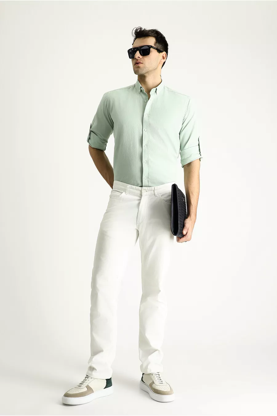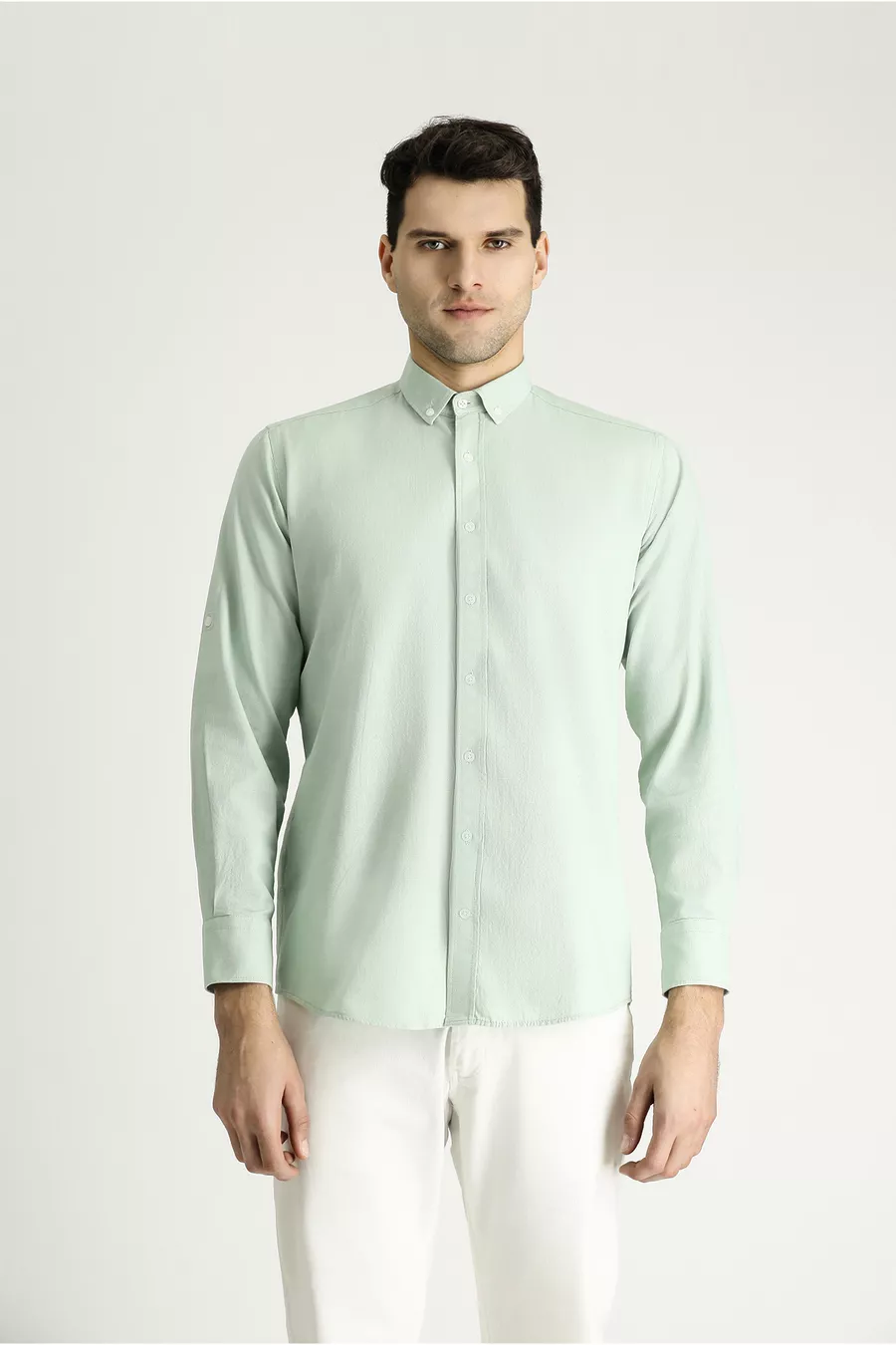 Long Sleeve Relaxed Fit Comfortable Cotton Shirt with Linen Look and Button-Down Collar