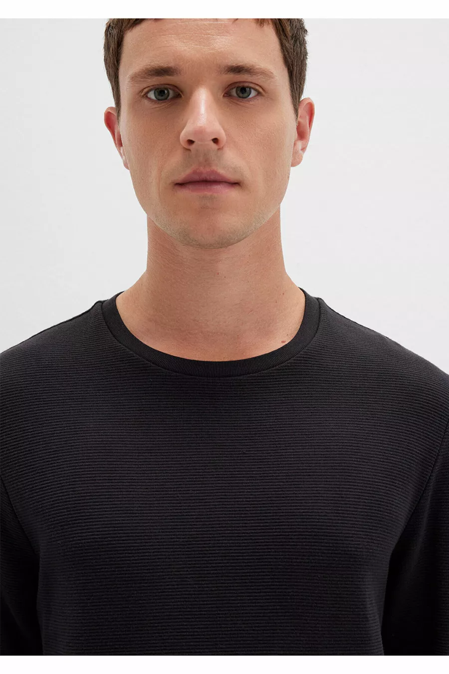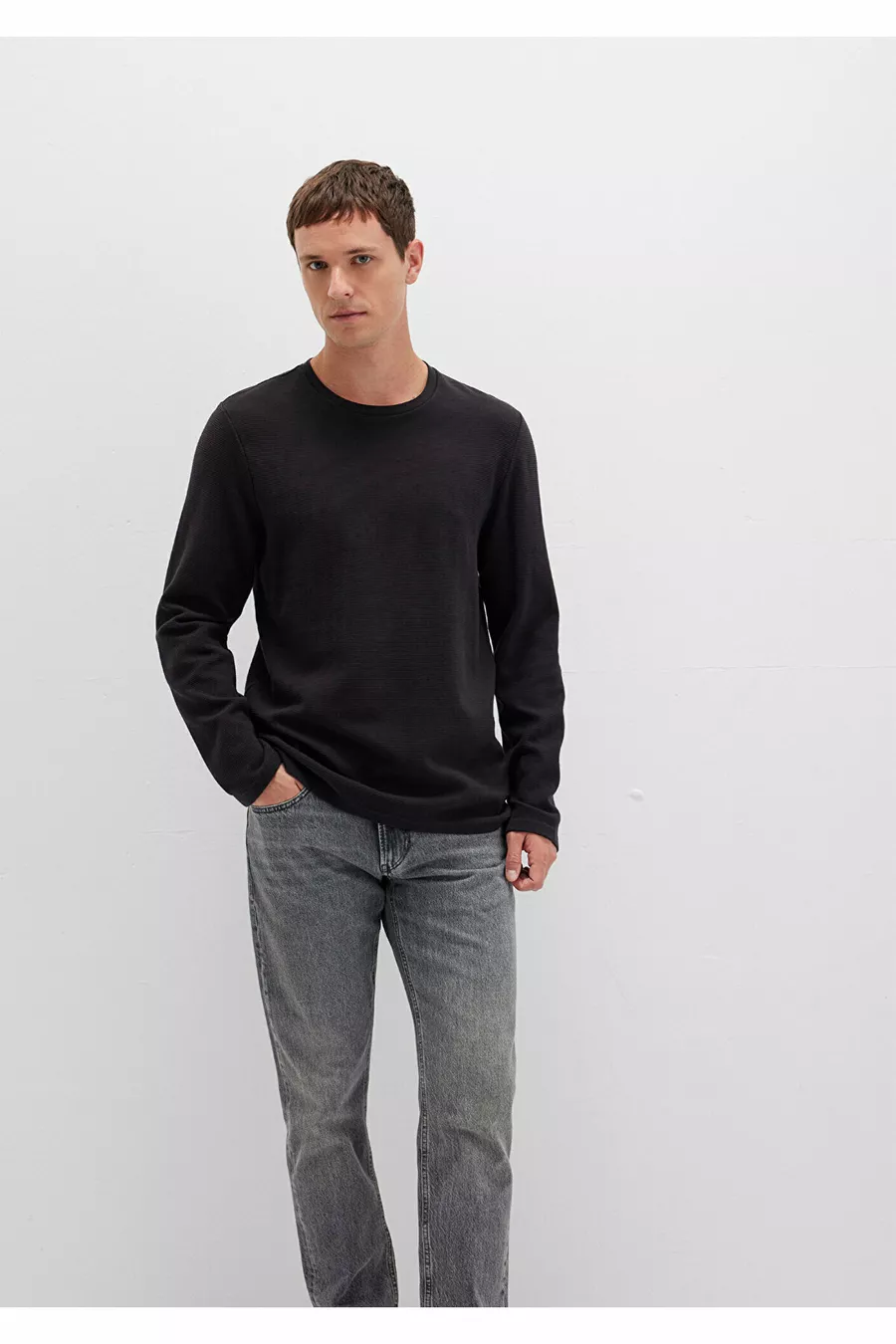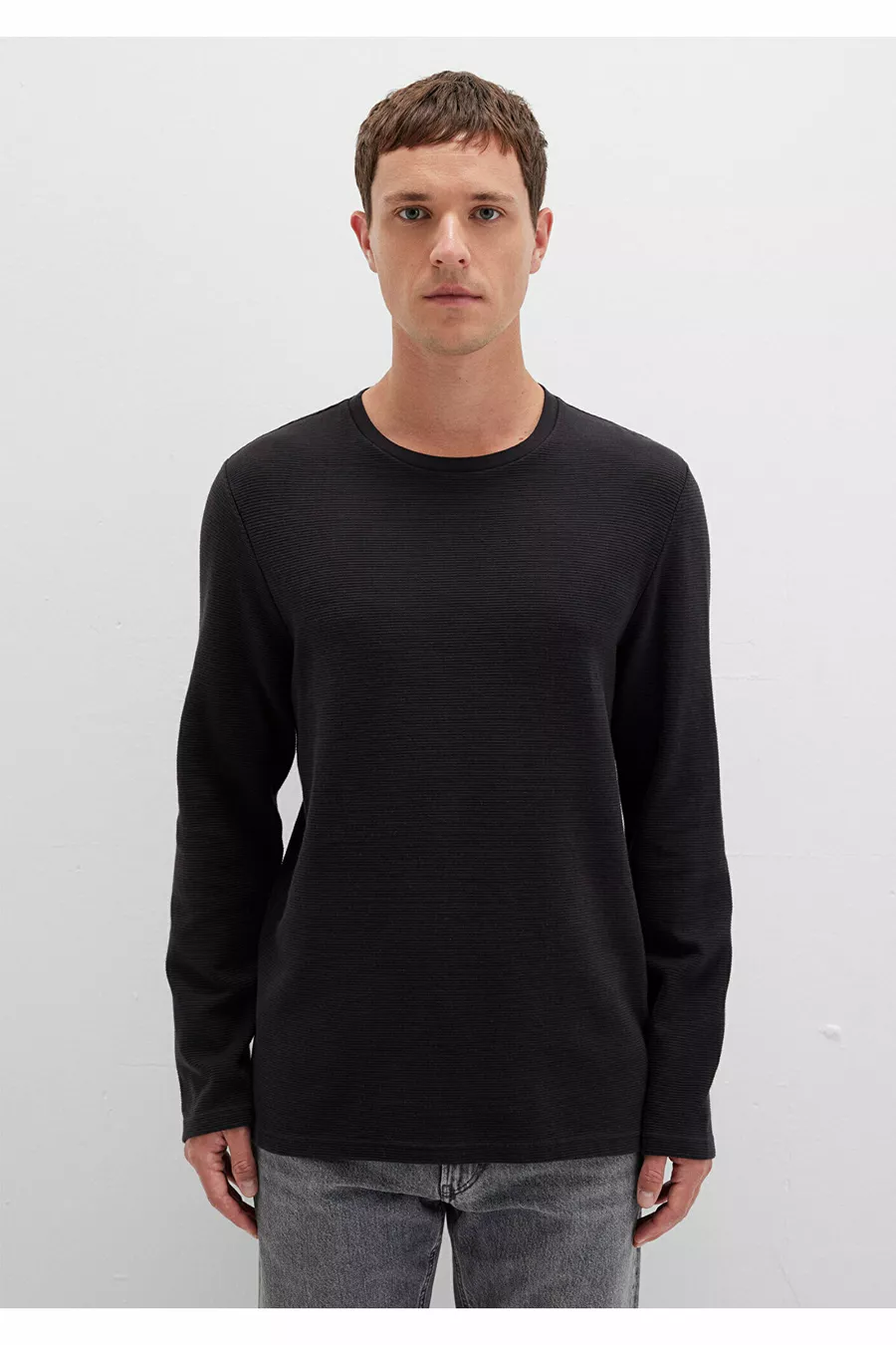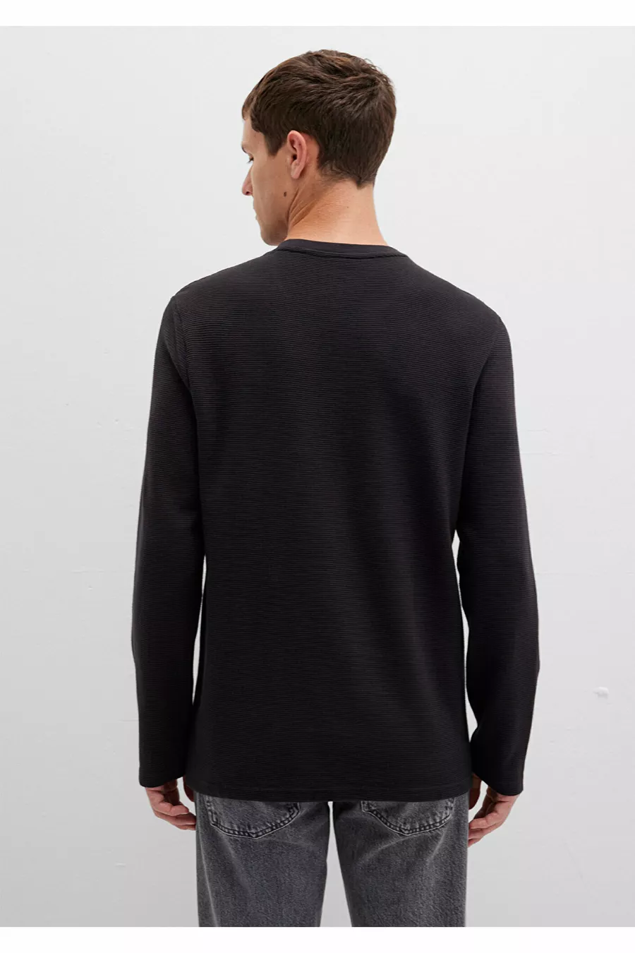 Long Sleeve Textured Black T-Shirt Slim Fit / Slim Cut