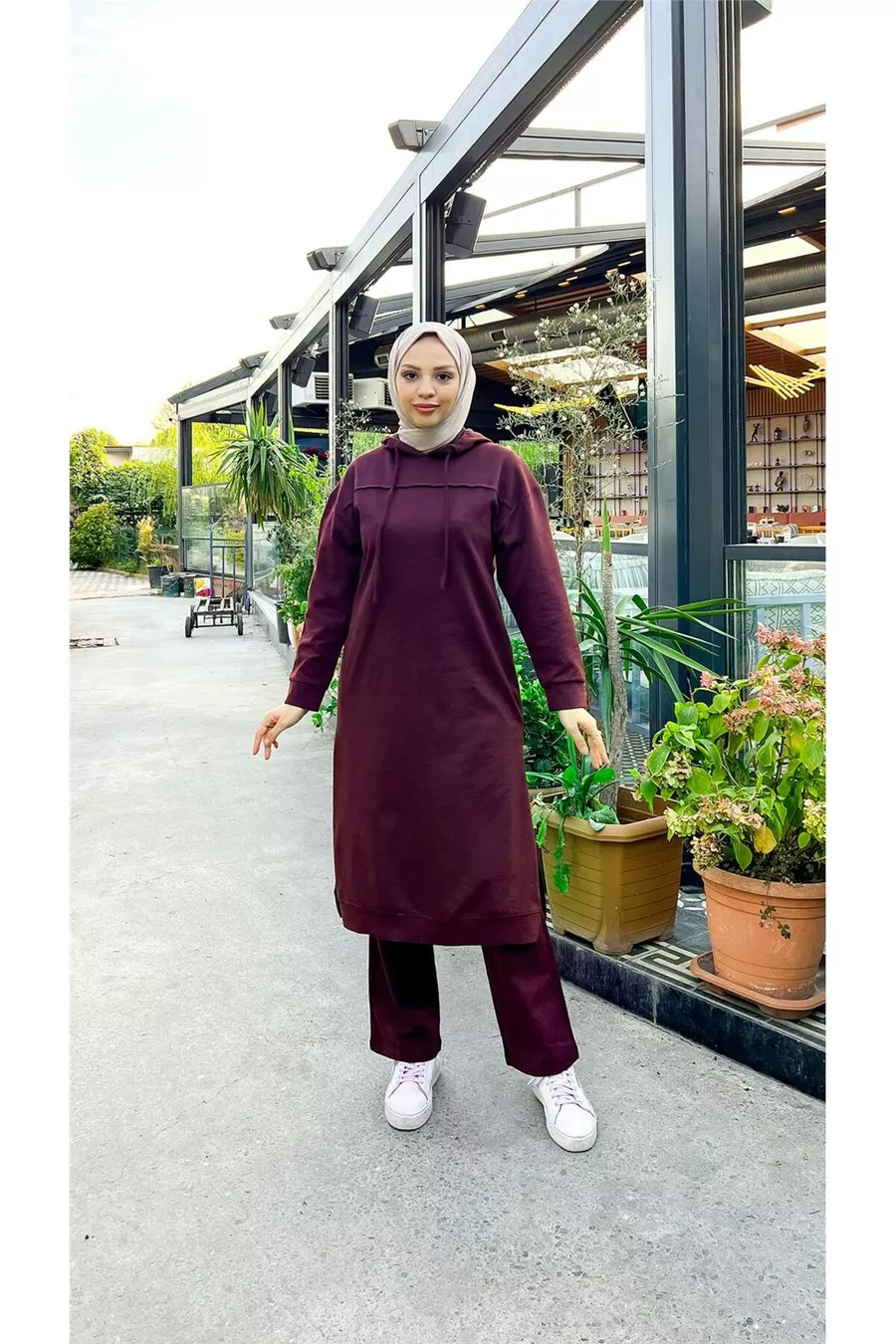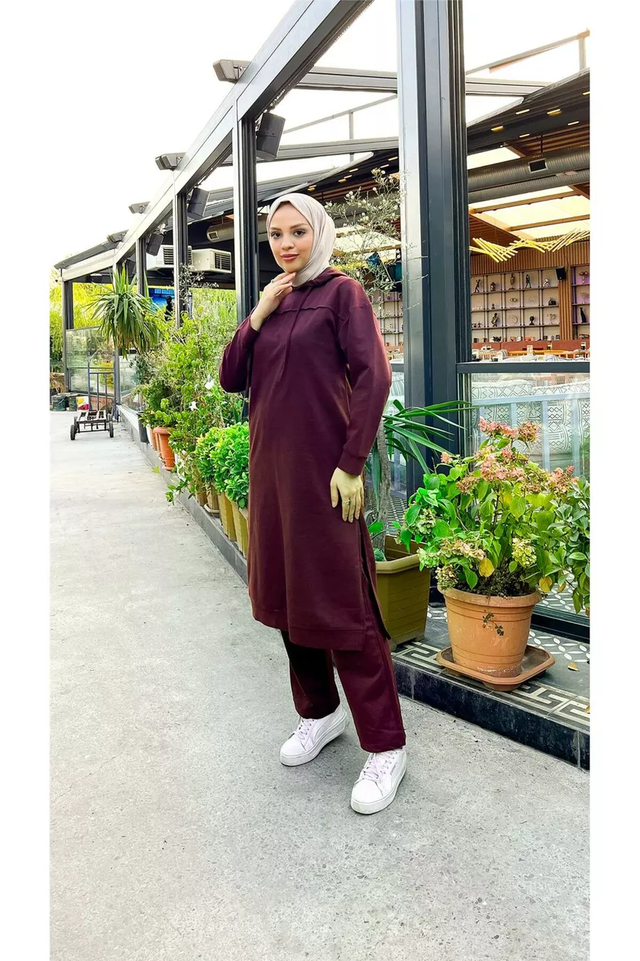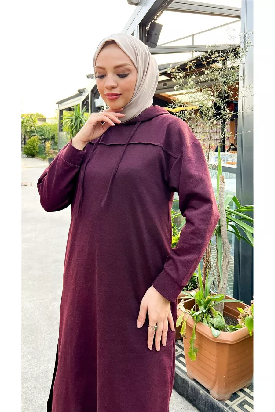 Silhouette: Regular Weave Type: 3-Ply Brushed Pattern: Plain Fit: Regular Collar Type: Hooded Fabric Type: Knitted Material: Cotton Polyester Color: Purple Pocket: No Pockets Product Details: With Slits Sleeve Length: Long Collection: Modest Clothing Additional Feature: With Slits Sleeve Type: Standard Sleeve Sustainability Detail: No Closure Type: Elastic Length: Long Belt/Sash Status: Without Belt Persona: Cool & Comfort Occasion: Casual/Daily Waist: Regular Waist Lining Status: Unlined Material Composition: 80% Cotton, 20% Polyester Washing Instructions: T1 Hem Type: Straight Hem Package Contents: Single Season: Winter Origin: TR Box Status: No Box