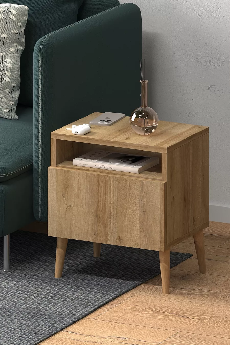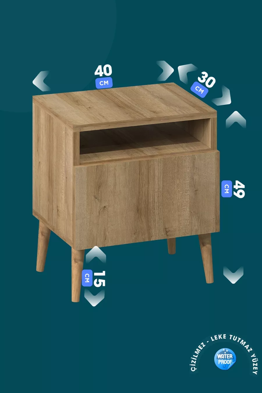 Material: Particleboard Color: Brown Warranty Period: 1 Year Number of Drawers: 1 Height: 48 cm Width: 40 cm Depth: 30 cm Style: Scandinavian Theme / Style: Retro Origin: Turkey
