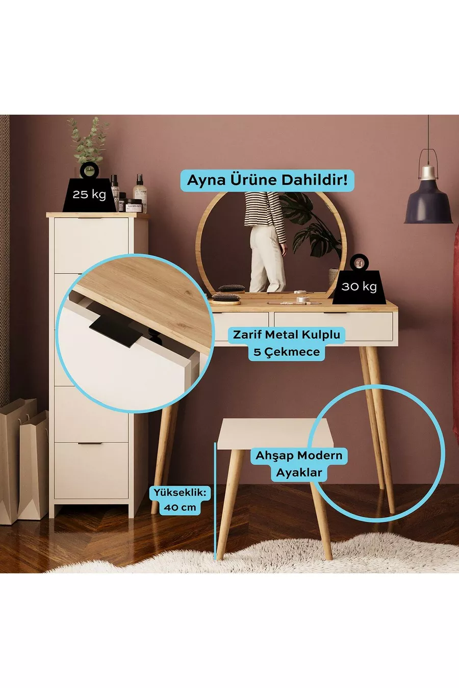 Material: Particleboard Feature: With cabinet Color: Beige Warranty Period: No warranty Height: 126 cm Width: 125 cm Mirror Function: Mirrored Depth: 40 cm Style: Scandinavian Theme / Style: Modern Origin: Turkey