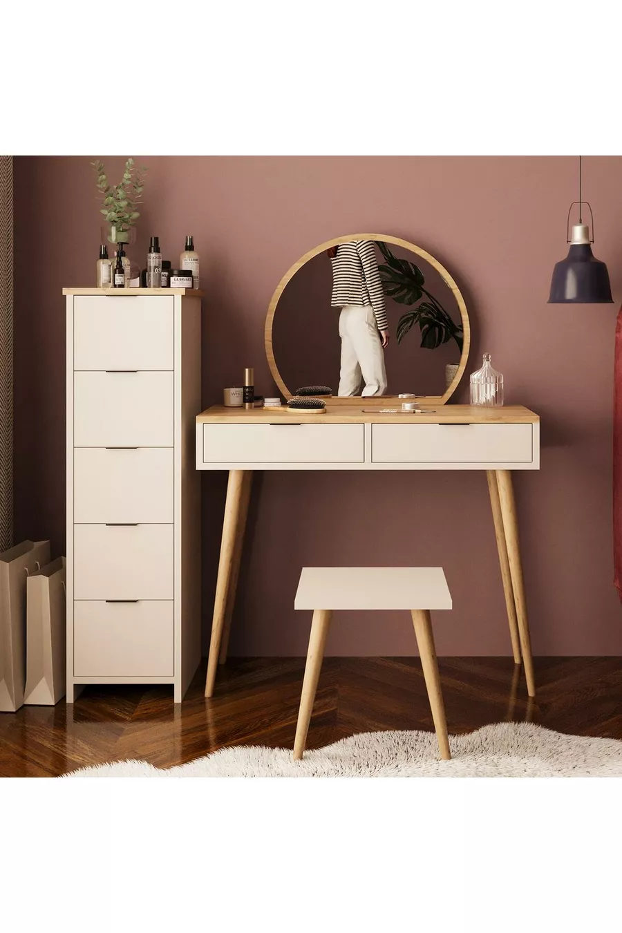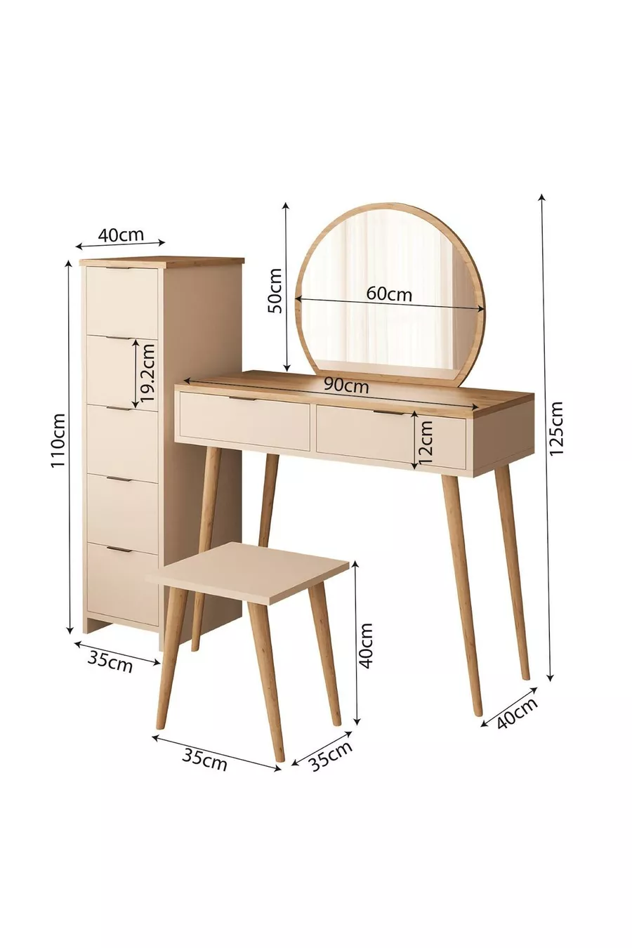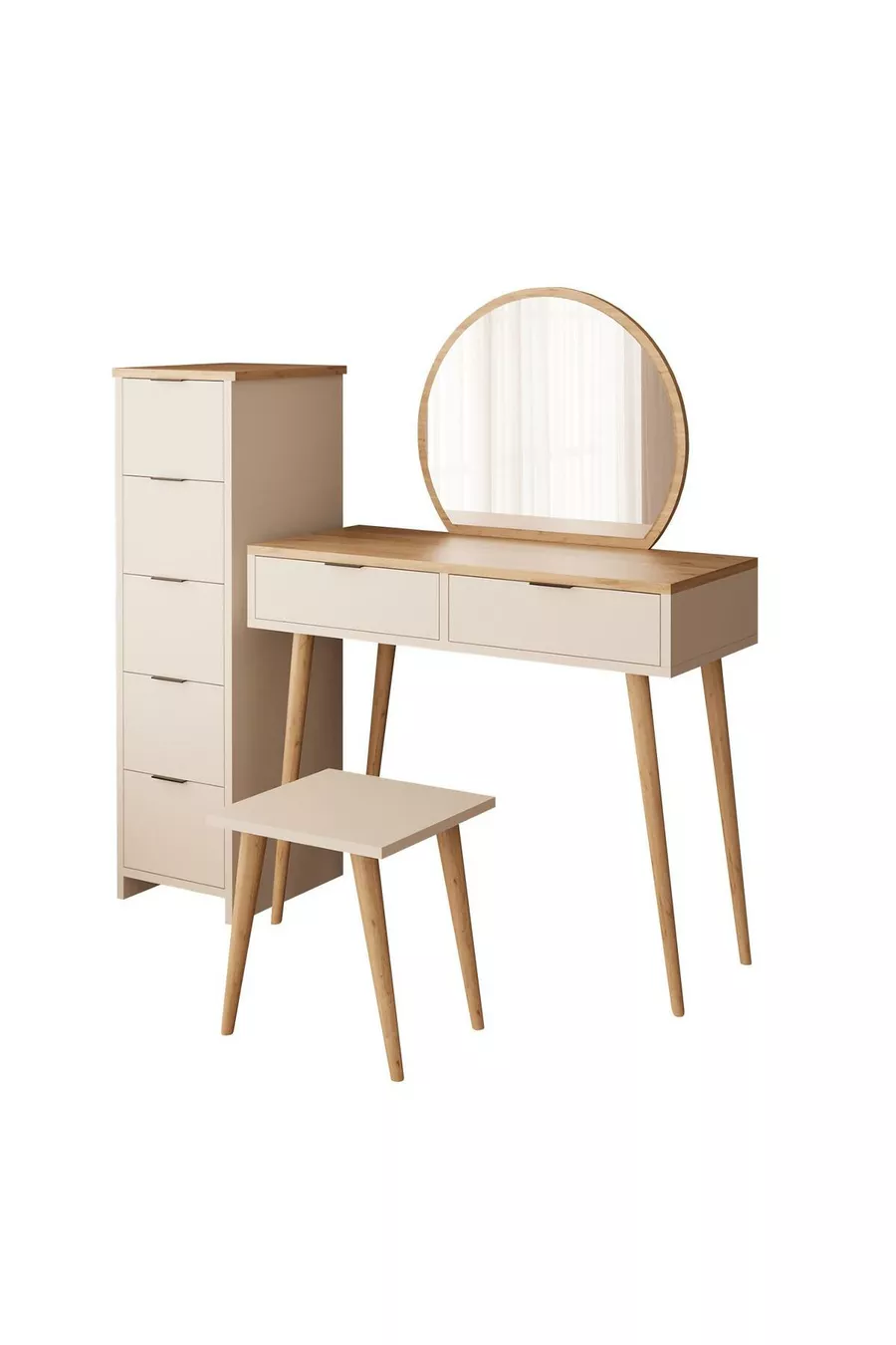 Lucy Vanity Set – Basket Sandstone | With Stool, Mirror, Multi-Purpose