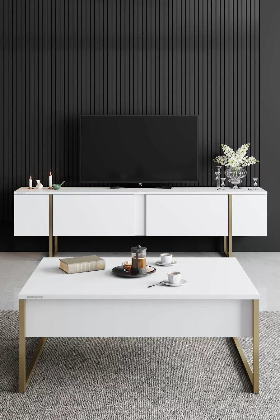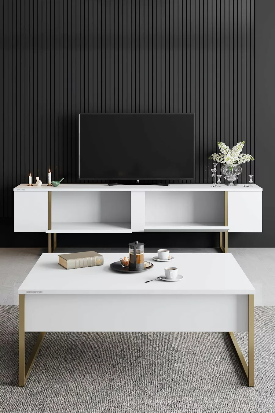 Luxe Gold Iron Leg White TV Stand TV Unit