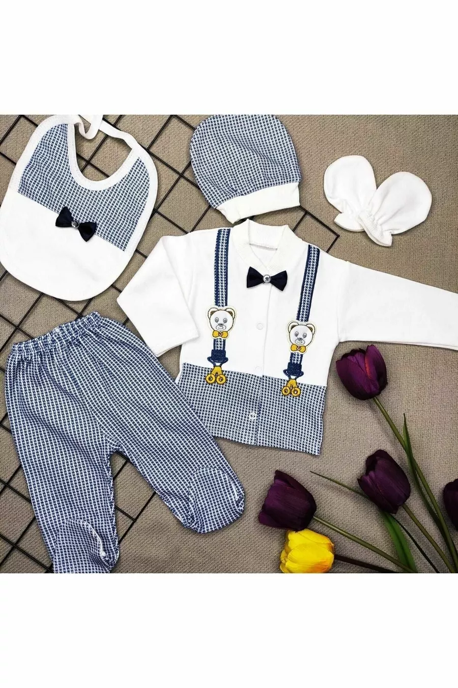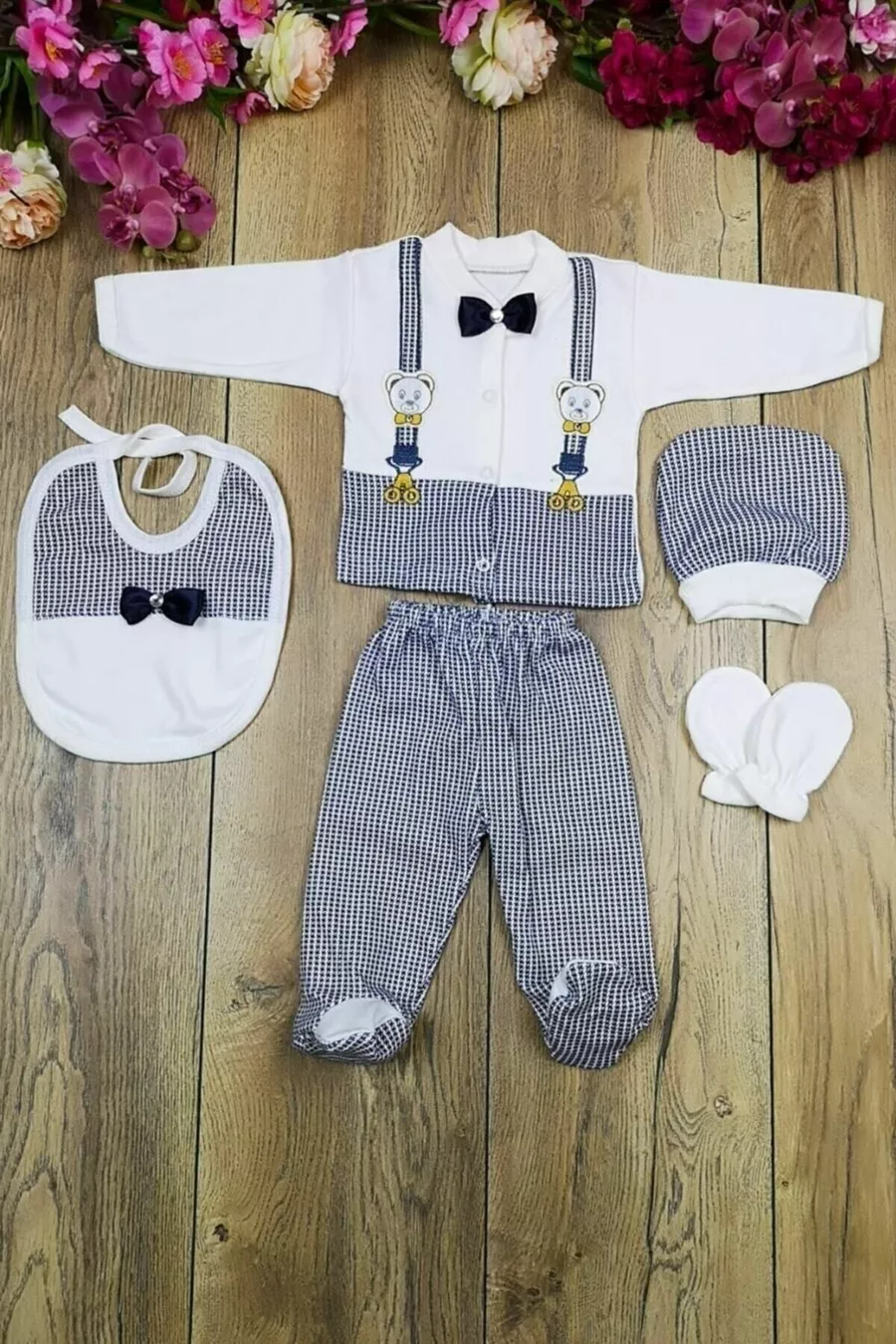 Luxury 5-Piece Baby Boy Hospital Outfit Set with Bow Tie and Bear Detail