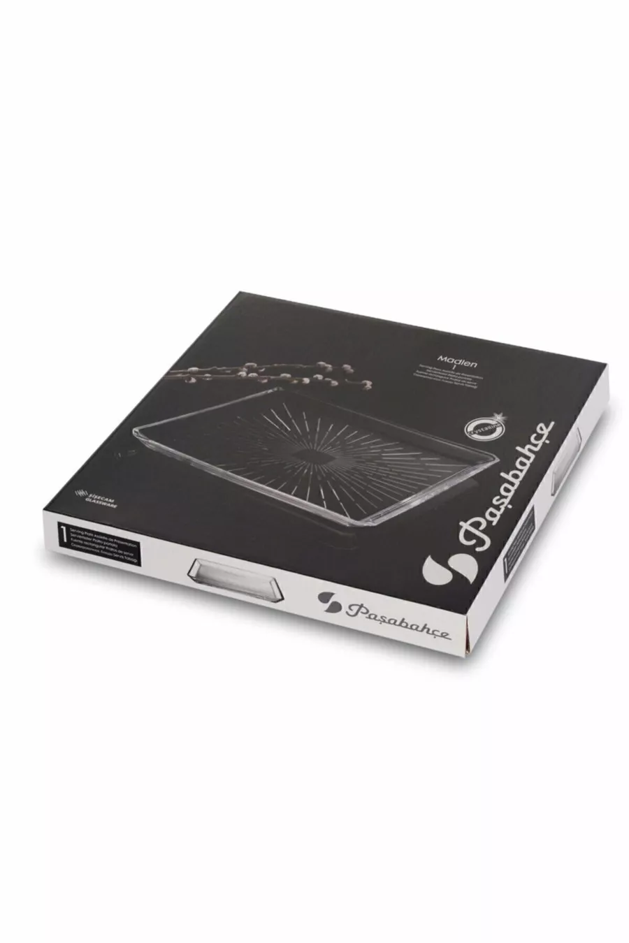 Material: Glass Number of Pieces: 1 Color: White Size/Dimension: 24 x 24 Feature: BPA Free Theme/Style: Modern Shape: Square Product Type: Serving Plate Origin: TR Care Instructions (Food Contact): Dishwasher safe. Food Contact Symbol: Yes