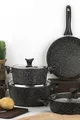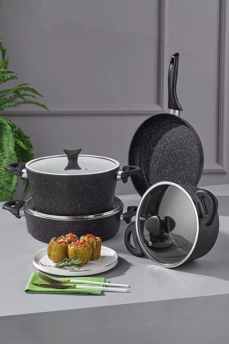 Color: Black Size/Dimension: 20 cm Volume: 2.3 L Feature: Non-stick Base Outer Material: Granite Inner Material: Granite Number of Pieces: 7 Origin: TR Care Instructions (Food Contact): Should be washed by hand. Material: Glass