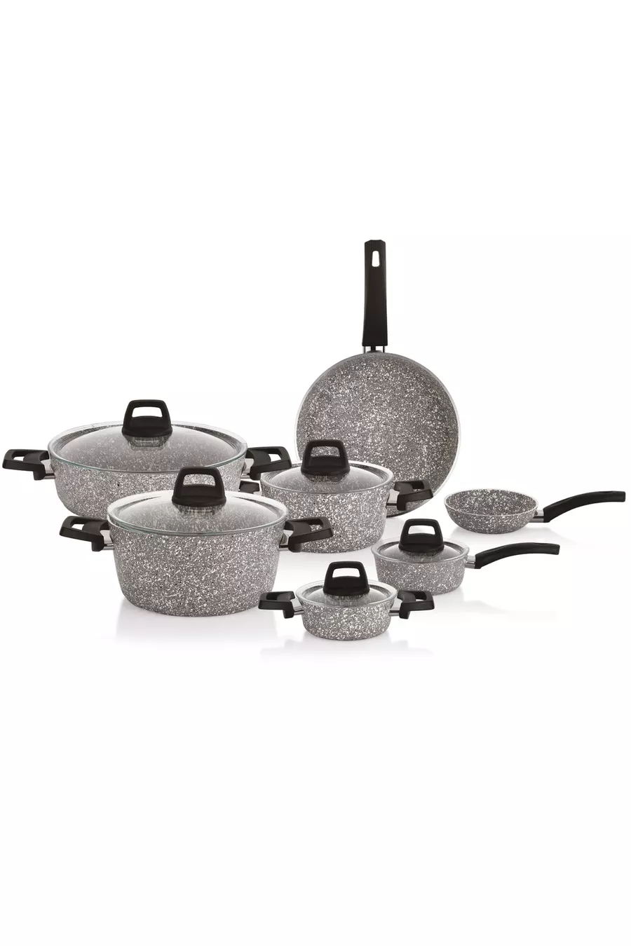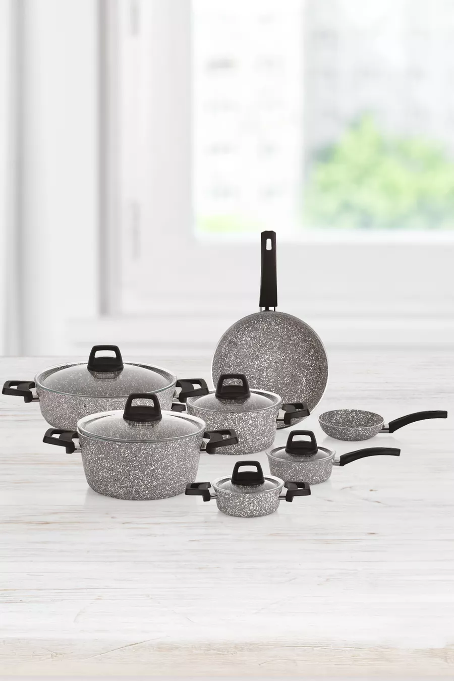 Color: Gray Size/Dimension: 14 cm Feature: Non-stick Base Outer Material: Granite Inner Material: Granite Number of Pieces: 12 Material: Granite