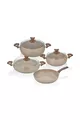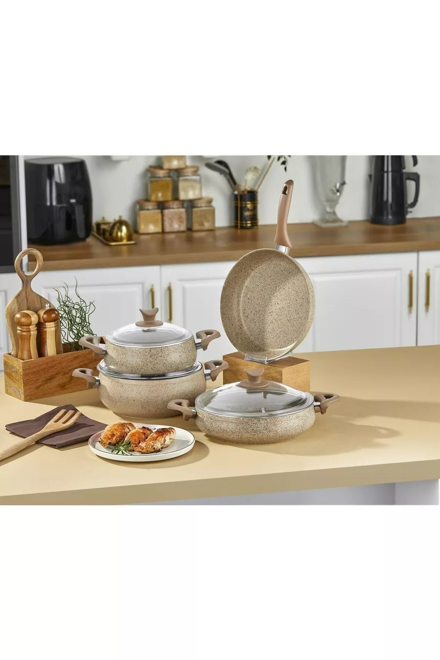 Color: Brown Size/Dimension: 25 cm Capacity: 2.3 L Feature: Non-stick Base Exterior Material: Granite Interior Material: Granite Number of Pieces: 4 Origin: TR Material: Aluminum