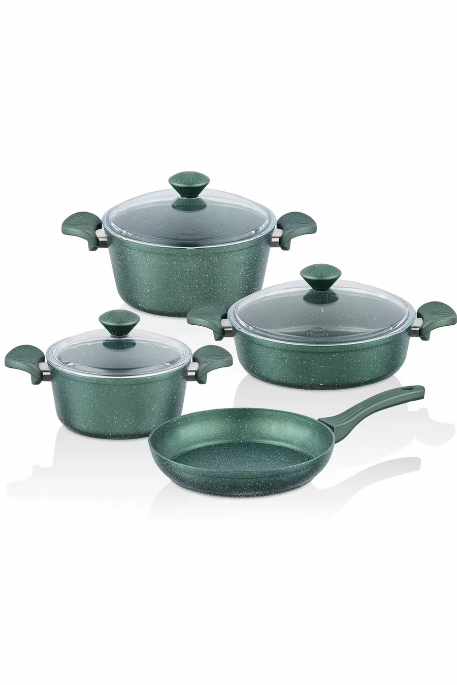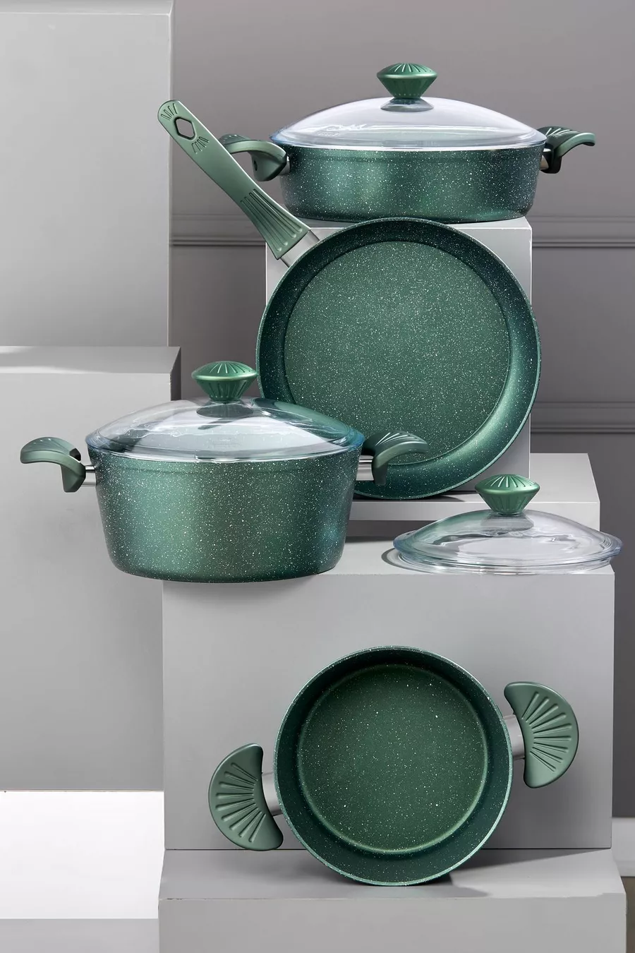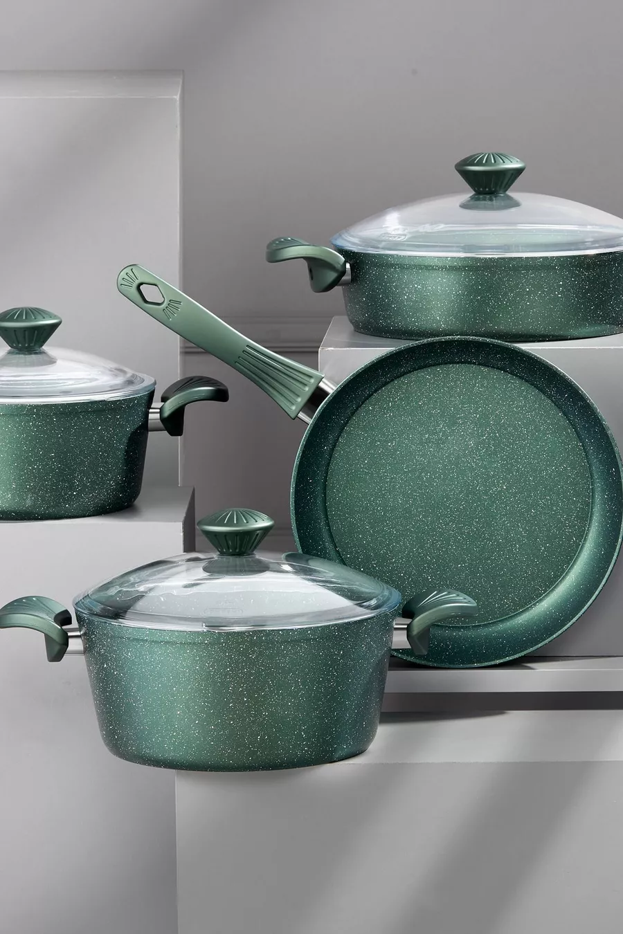 Color: Khaki Size/Dimension: 26 cm Capacity: 3.9 L Feature: Non-stick Base Exterior Material: Granite Interior Material: Granite Number of Pieces: 7 Material: Glass
