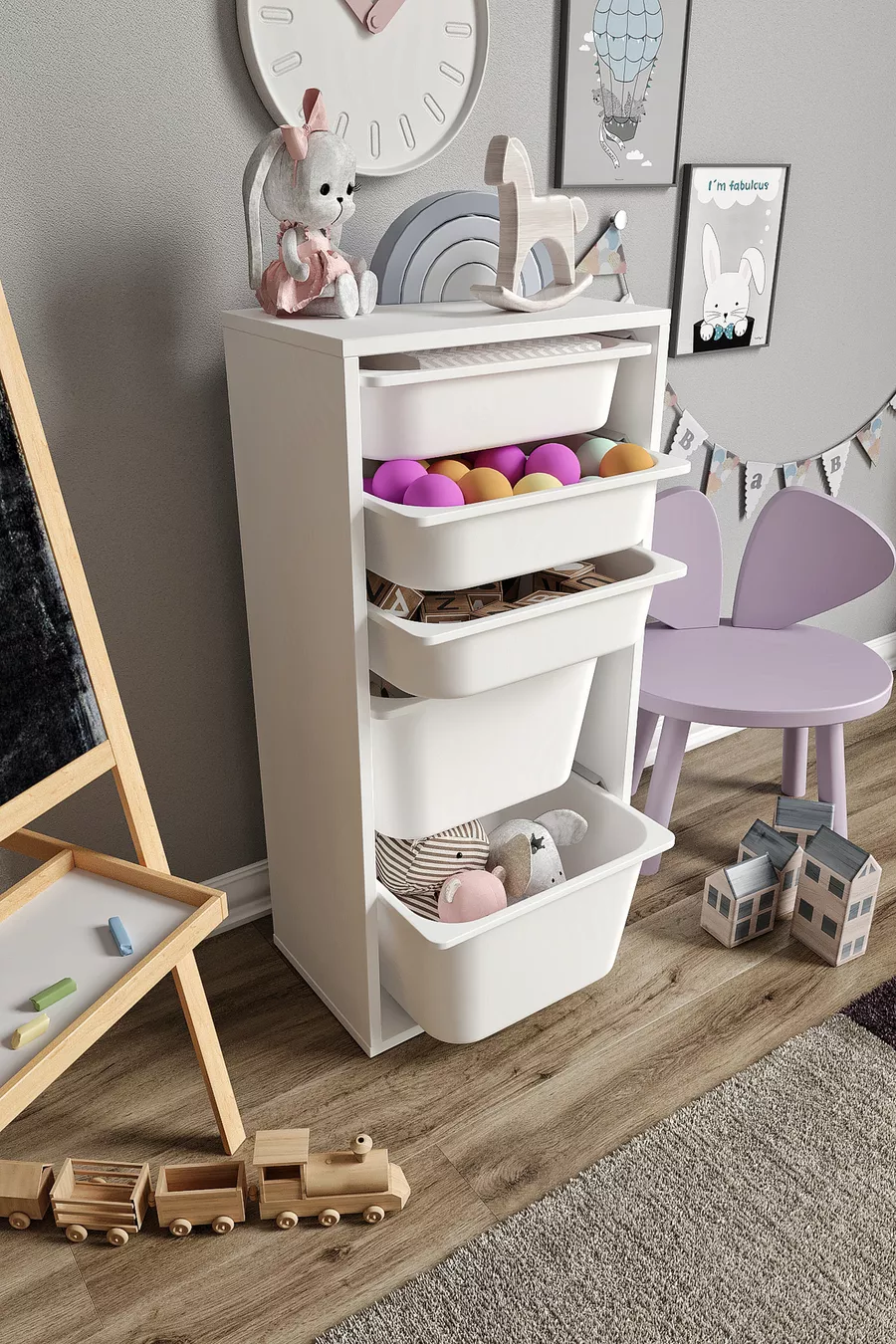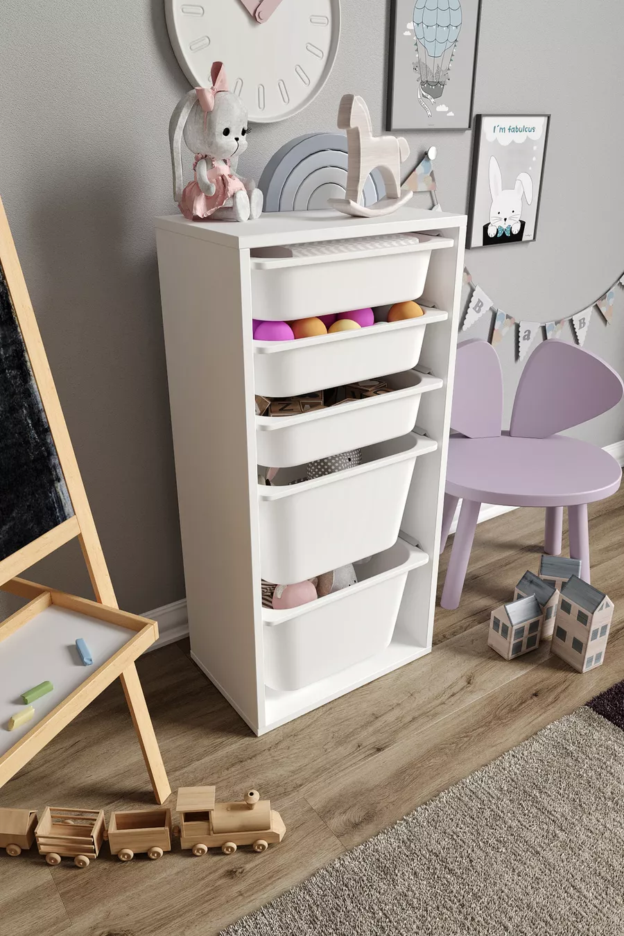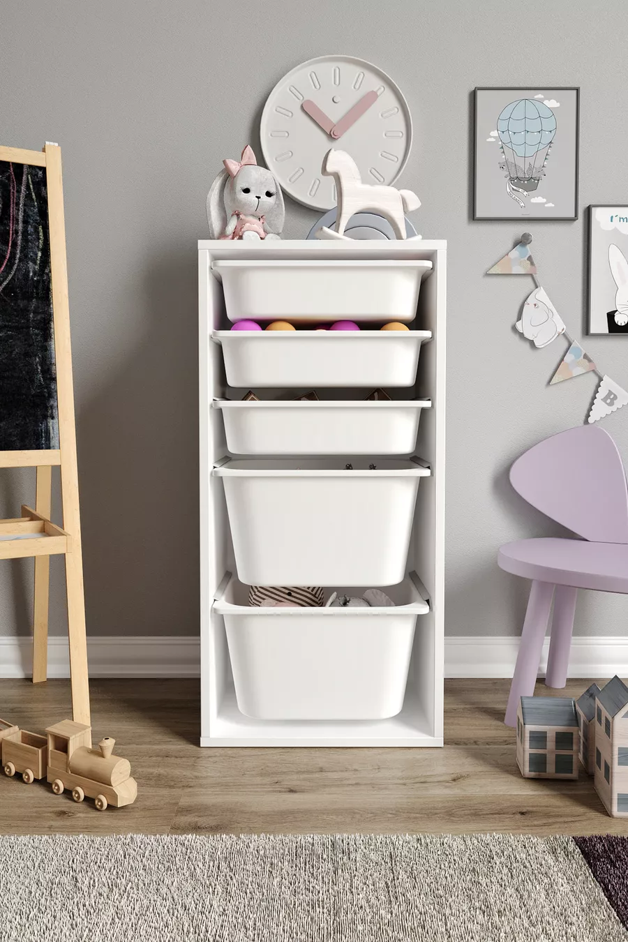 Material: MDF Number of Drawers: 5 Width: 46 cm Depth: 30 cm Height: 97 cm Color: White Theme / Style: Modern Origin: TR Age: All Age Groups
