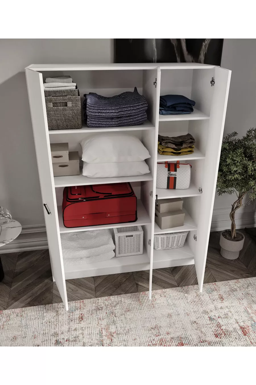 Function: With Cover Color: White Width: 145 cm Depth: 52 cm Number of Covers: 3 Body Material: MDF Mirror Function: Without Mirror Warranty Period: 3 Years Style: Modern Theme / Style: Modern Feature: With Cover