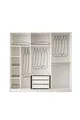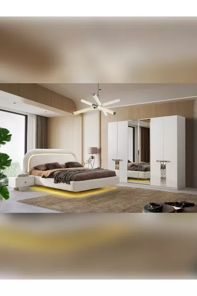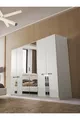 Color: White Warranty Period: 2 Years Bed/Base Size: 160 x 202 Bed Function: Without Base Wardrobe Function: With Doors Wardrobe Body Material: MDF Number of Doors: 6 Set Contents: Wardrobe + 2 Nightstands + Dresser + Bed Headboard Style: Scandinavian Theme / Style: Scandinavian Origin: TR Feature: Water Resistant
