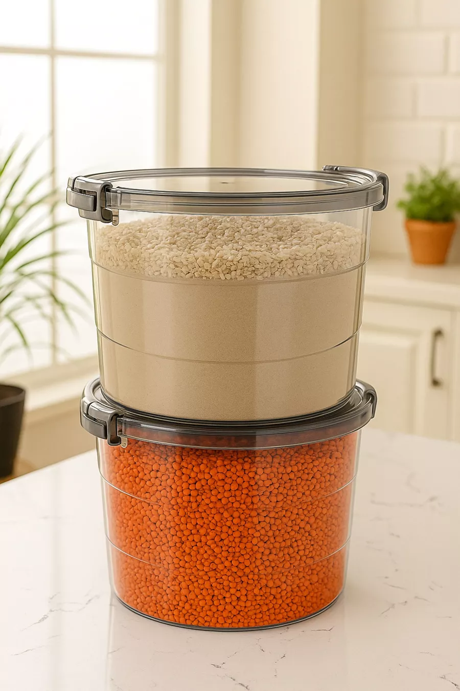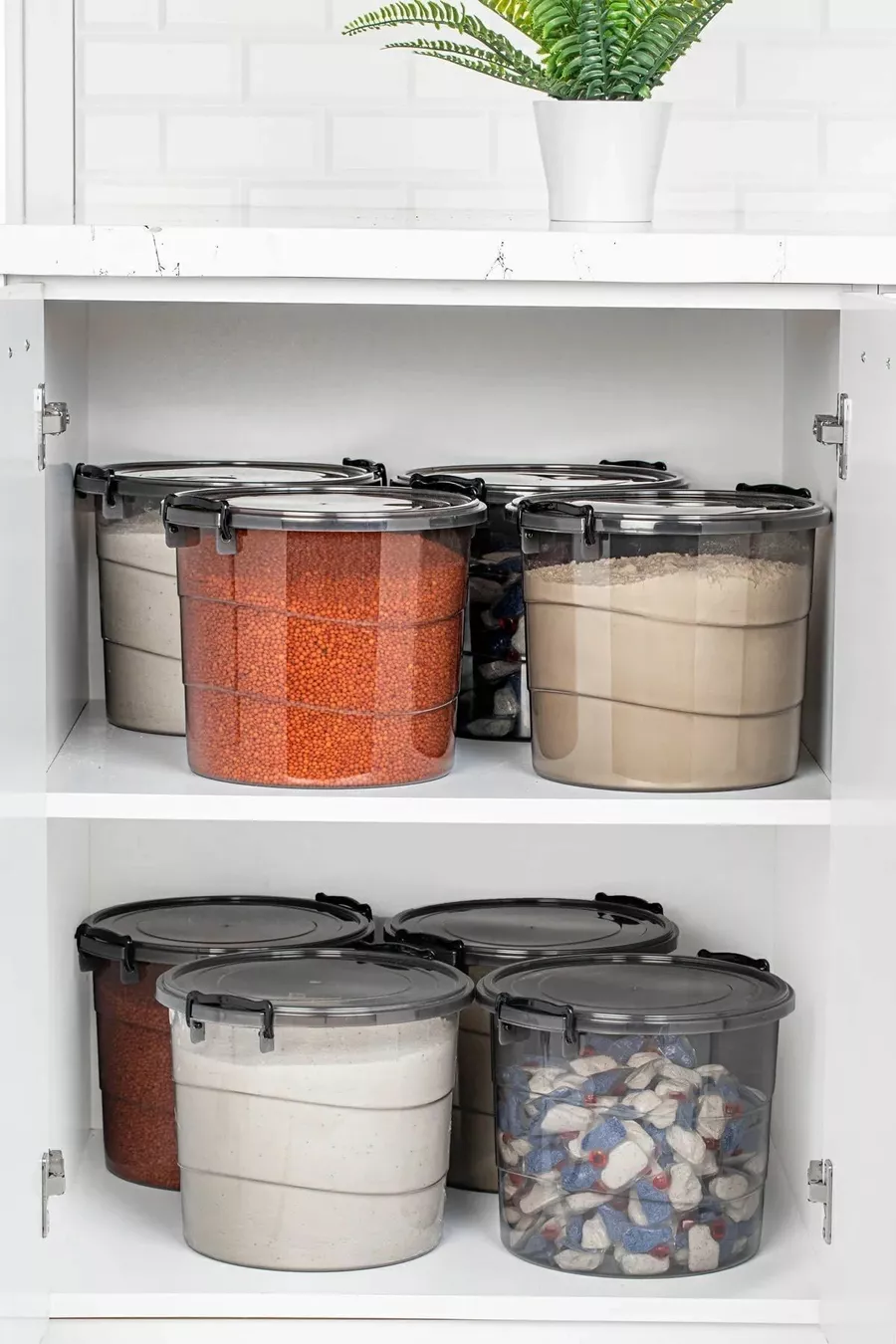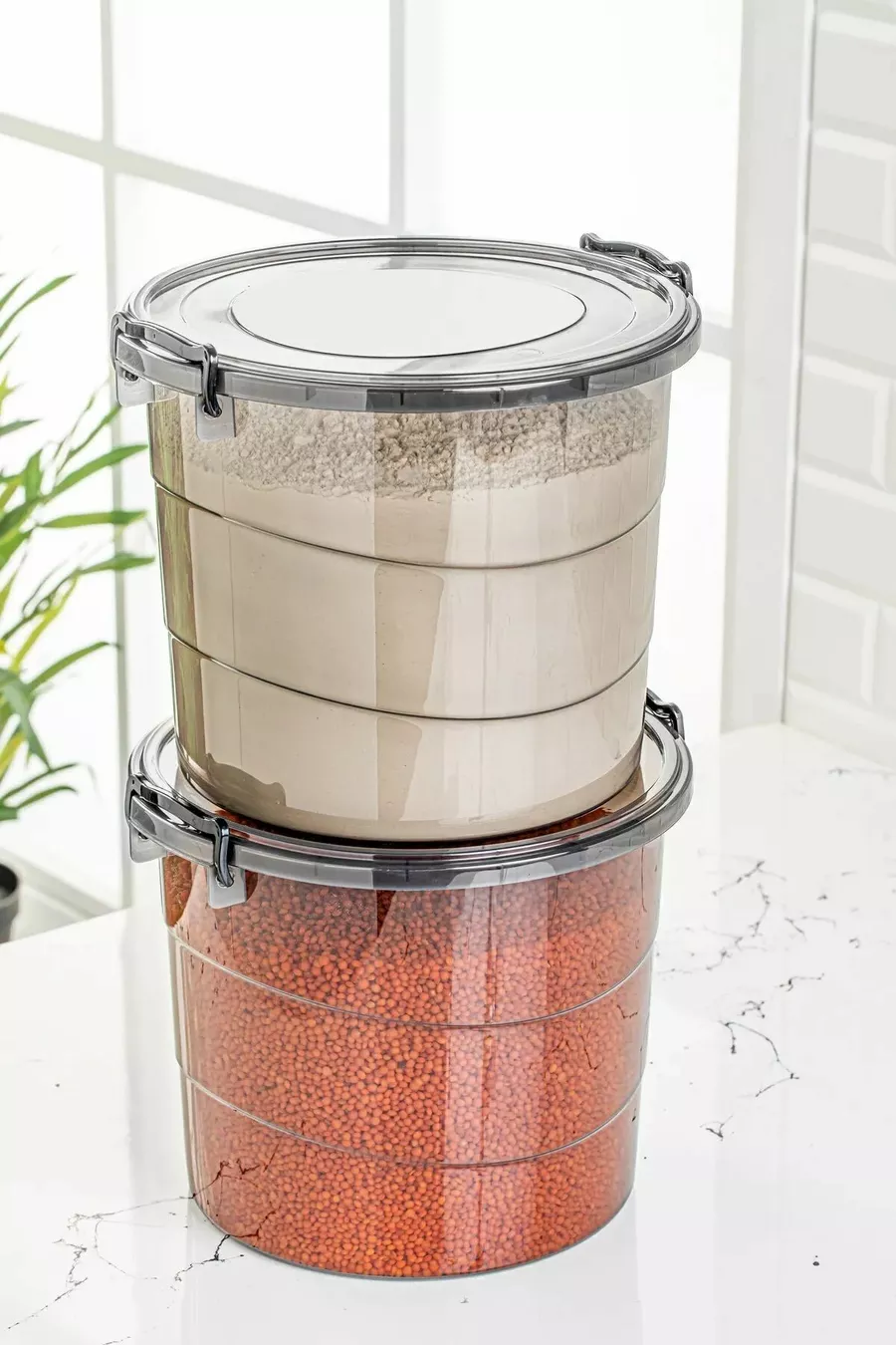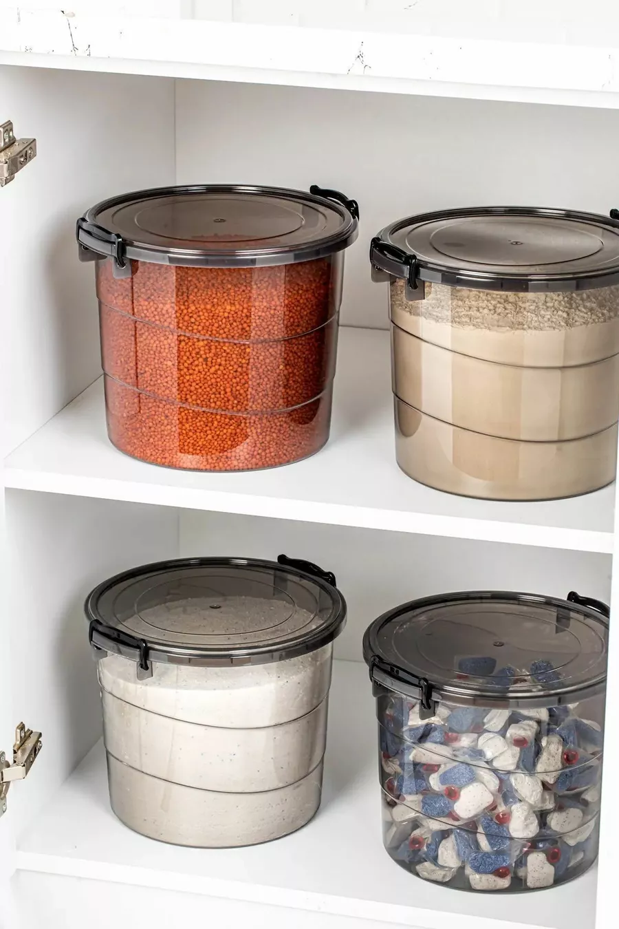 Mega Size Advantage 2-Pack Round Flour and Legume Container - Handled Detergent Storage Box 7 Liters Anthracite