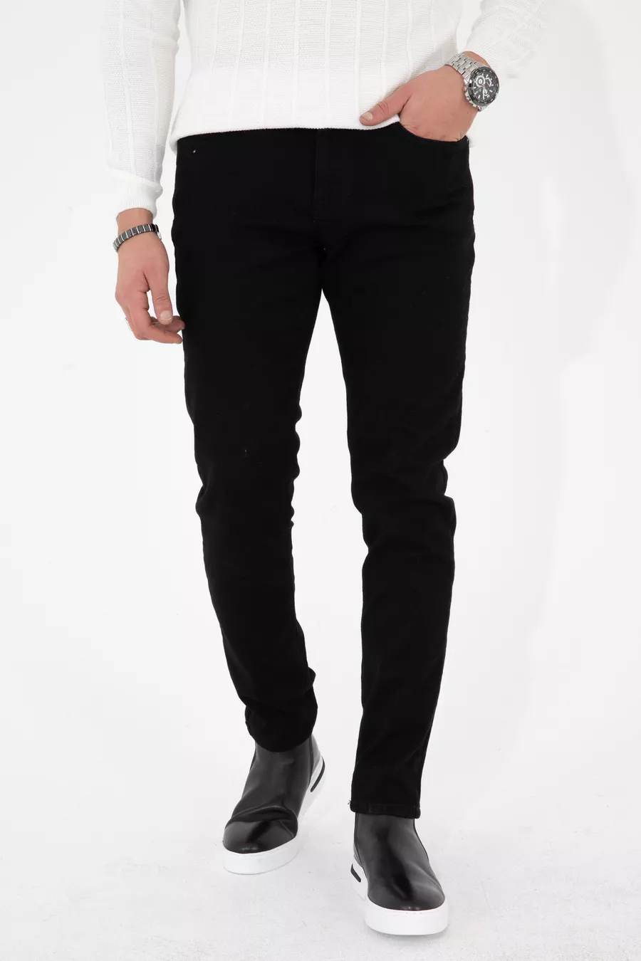 Men's Alex Slim Fit Stretch Black Jeans -de-slim
