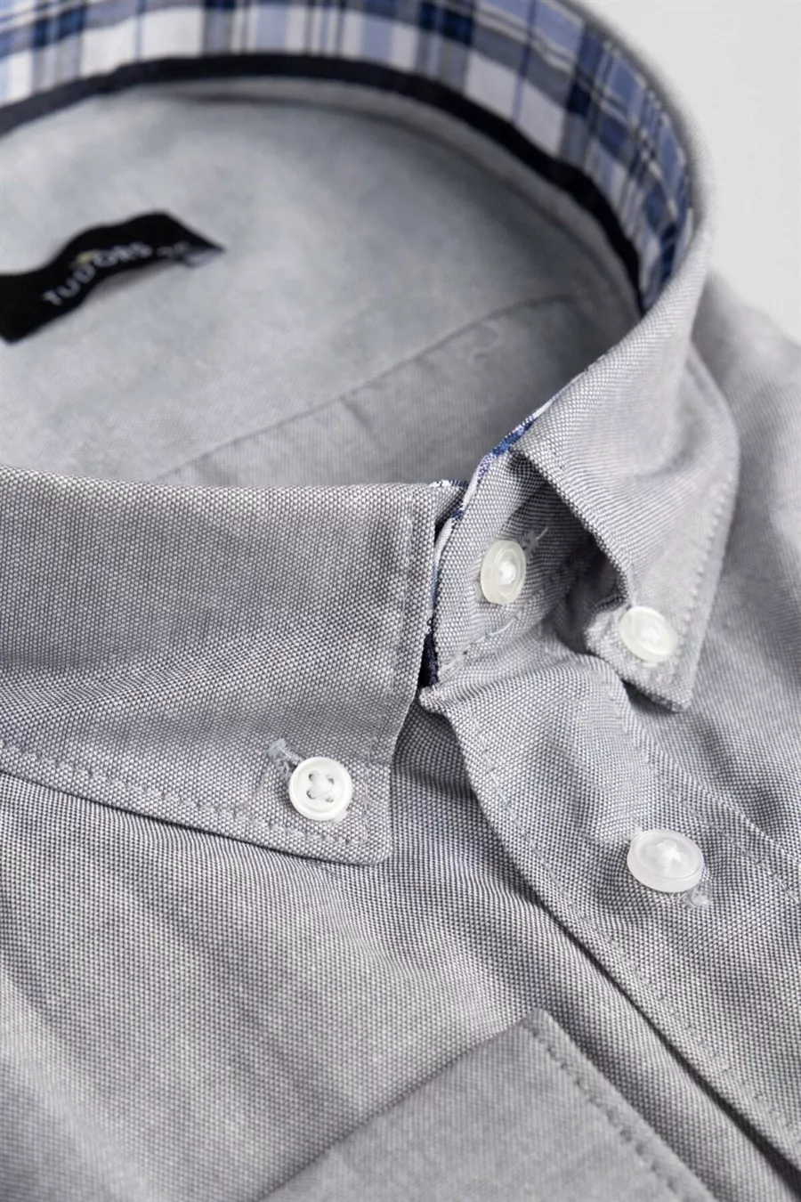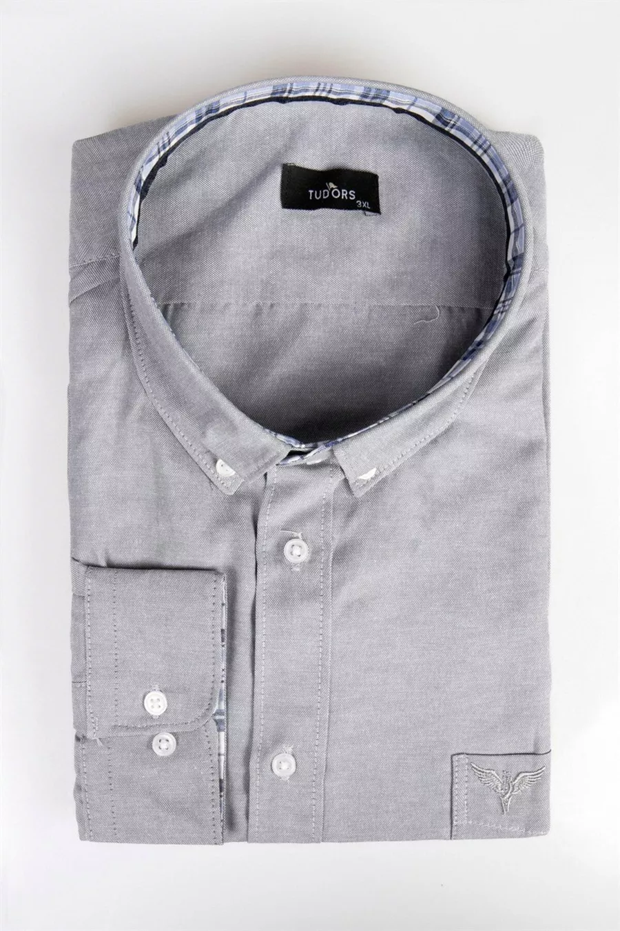 Men's Big Size Long Sleeve Cotton Oxford Texture Single Pocket Gray Button-Down Collar Shirt
