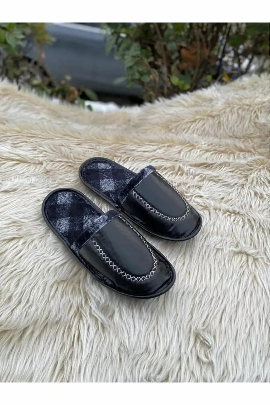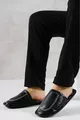 Sole: Rubber Material: Synthetic Leather Sole Material: Rubber Closure Type: Slip-On Insole Material: Synthetic Leather Color: Black Heel Height: Low Heel (1-4 cm) Upper Material: Synthetic Leather Lining Material: Synthetic Leather Additional Feature: Orthopedic Sole Sustainability Detail: No Heel Type: Flat Heel Material Composition: 100% Synthetic Leather Environment: Classic Pattern: Herringbone Washing Instructions: Type 4 Fabric Type: Synthetic Leather