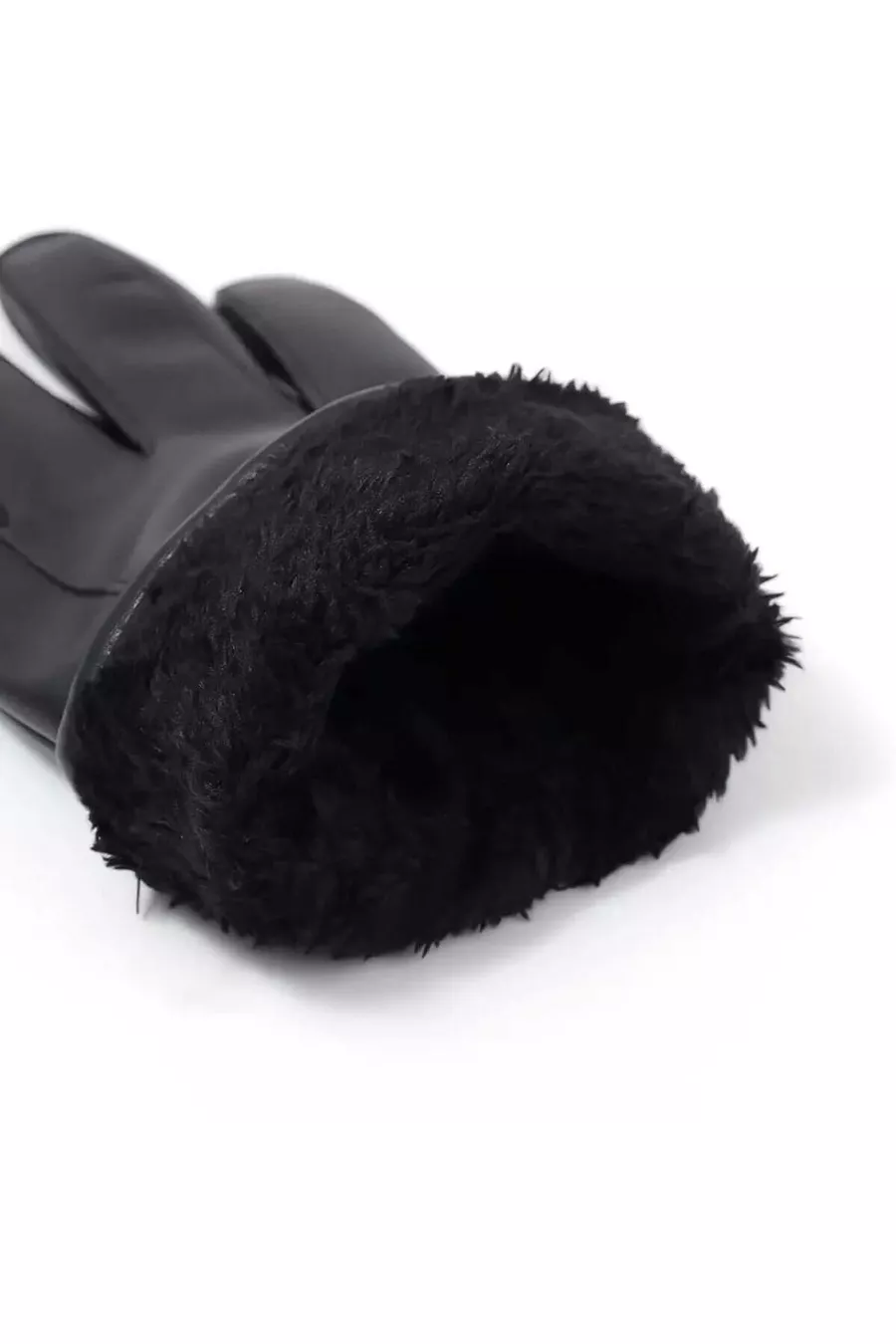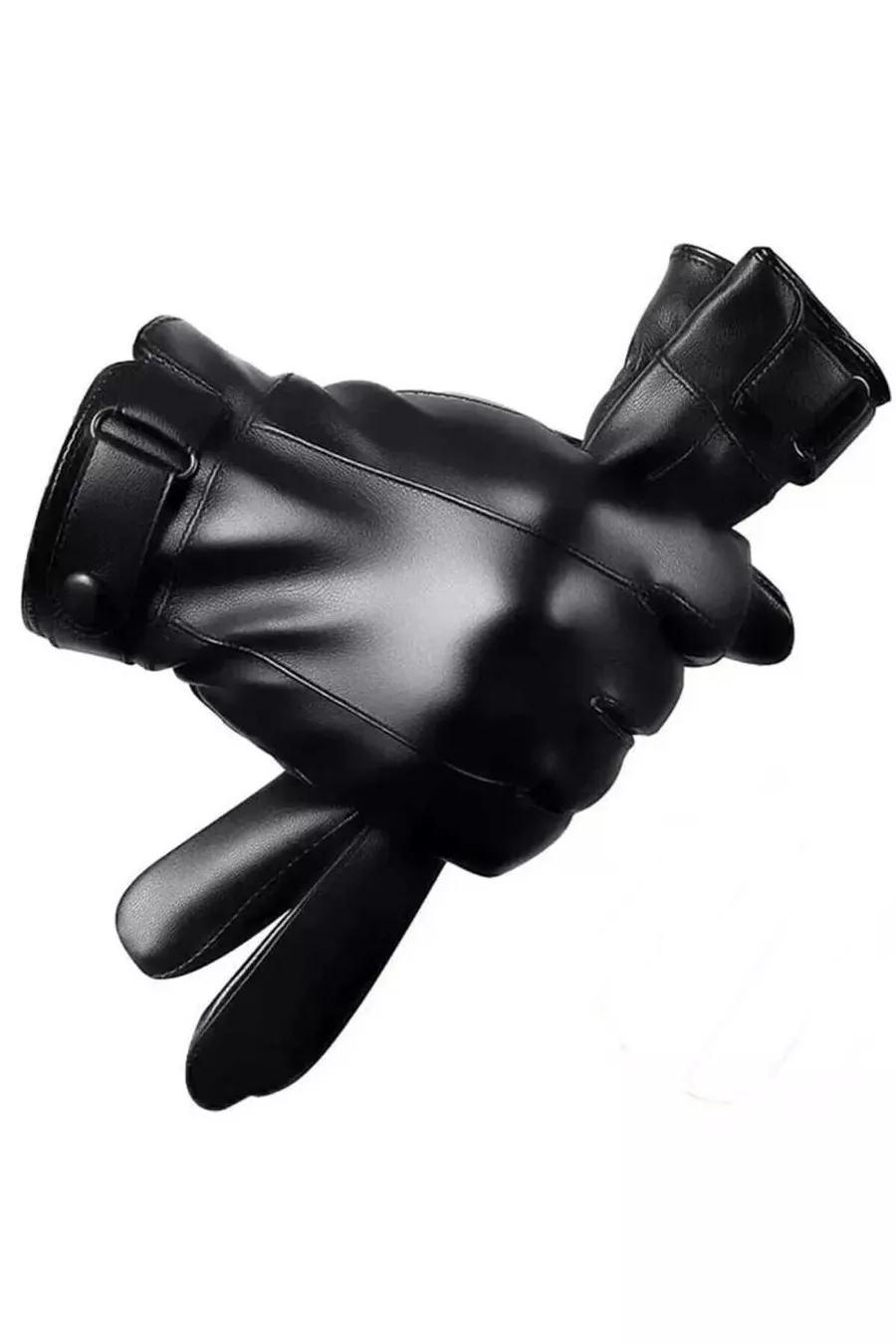 Men's Black Faux Leather Gloves Compatible with Touchscreen