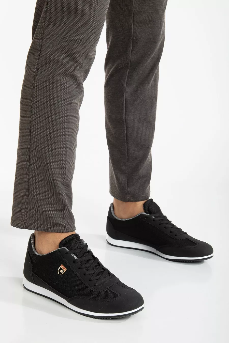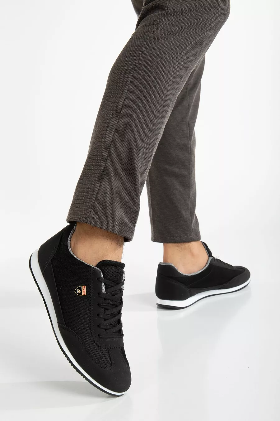 Men's Black and White Lace-Up Casual Casual Comfortable Lightweight Soft Sole Mesh Sneaker Sneakers