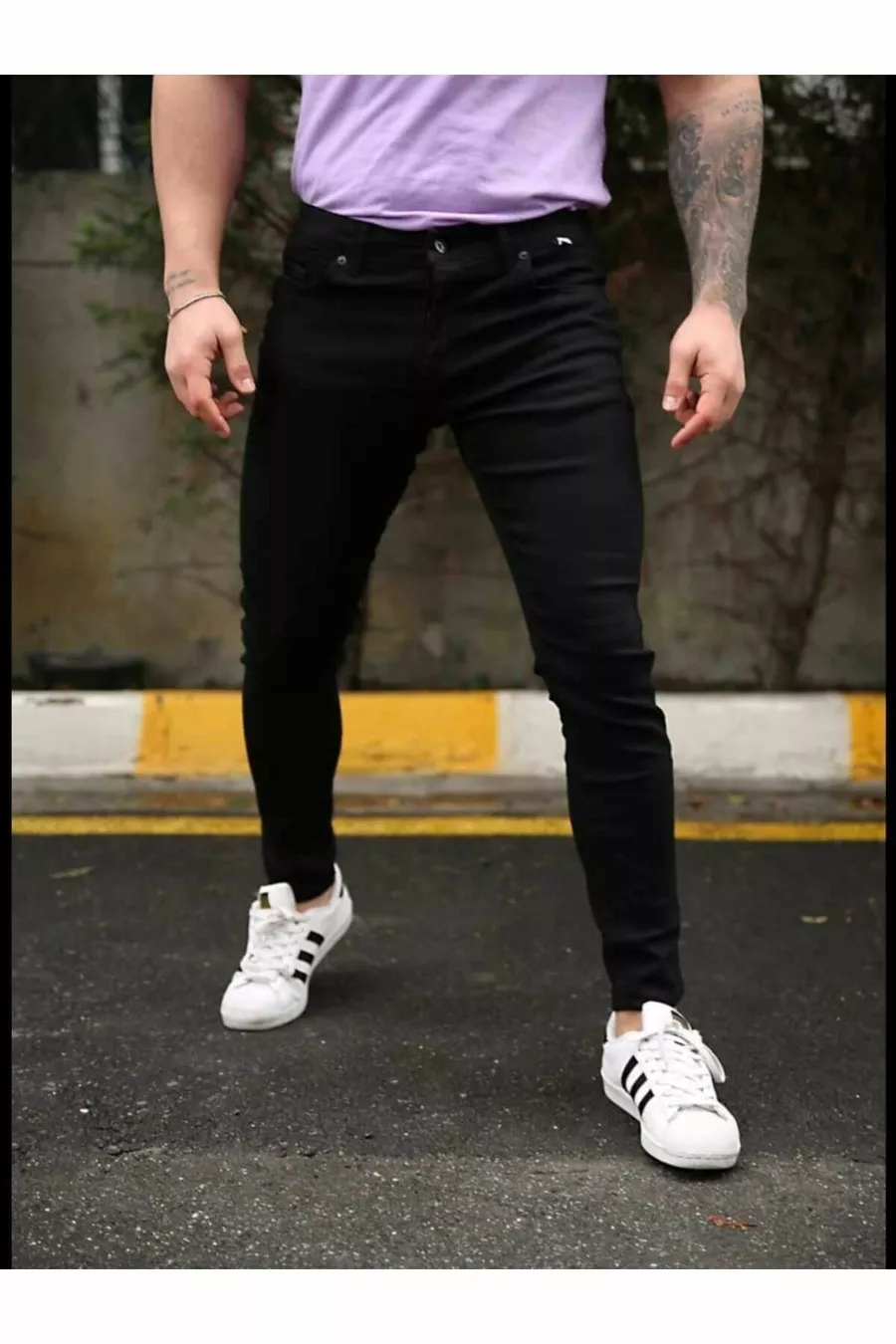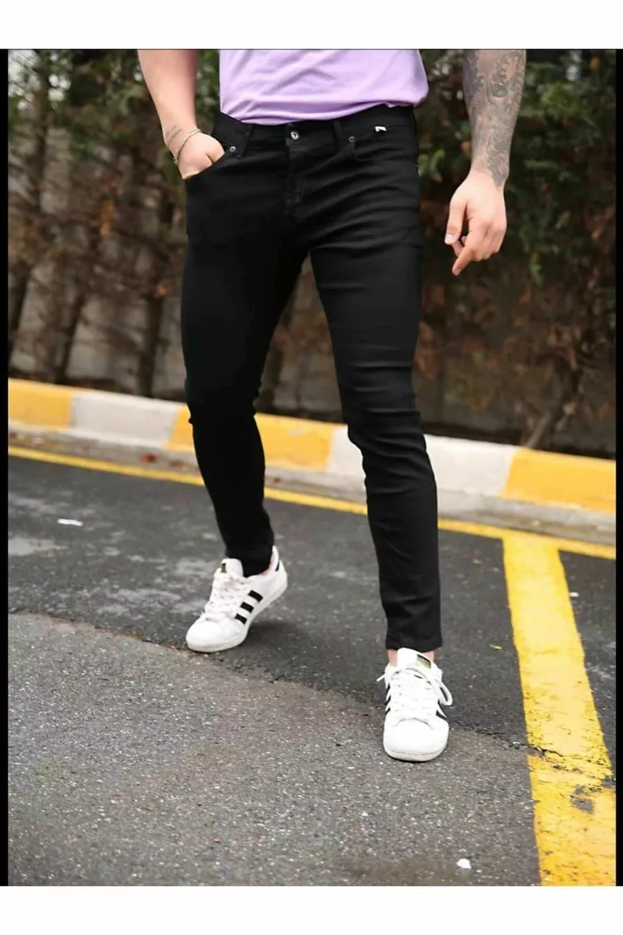 Men's Black Plain Classic Casual Slim Fit Italian Cut - Regular Fit Stretch Men's Jeans