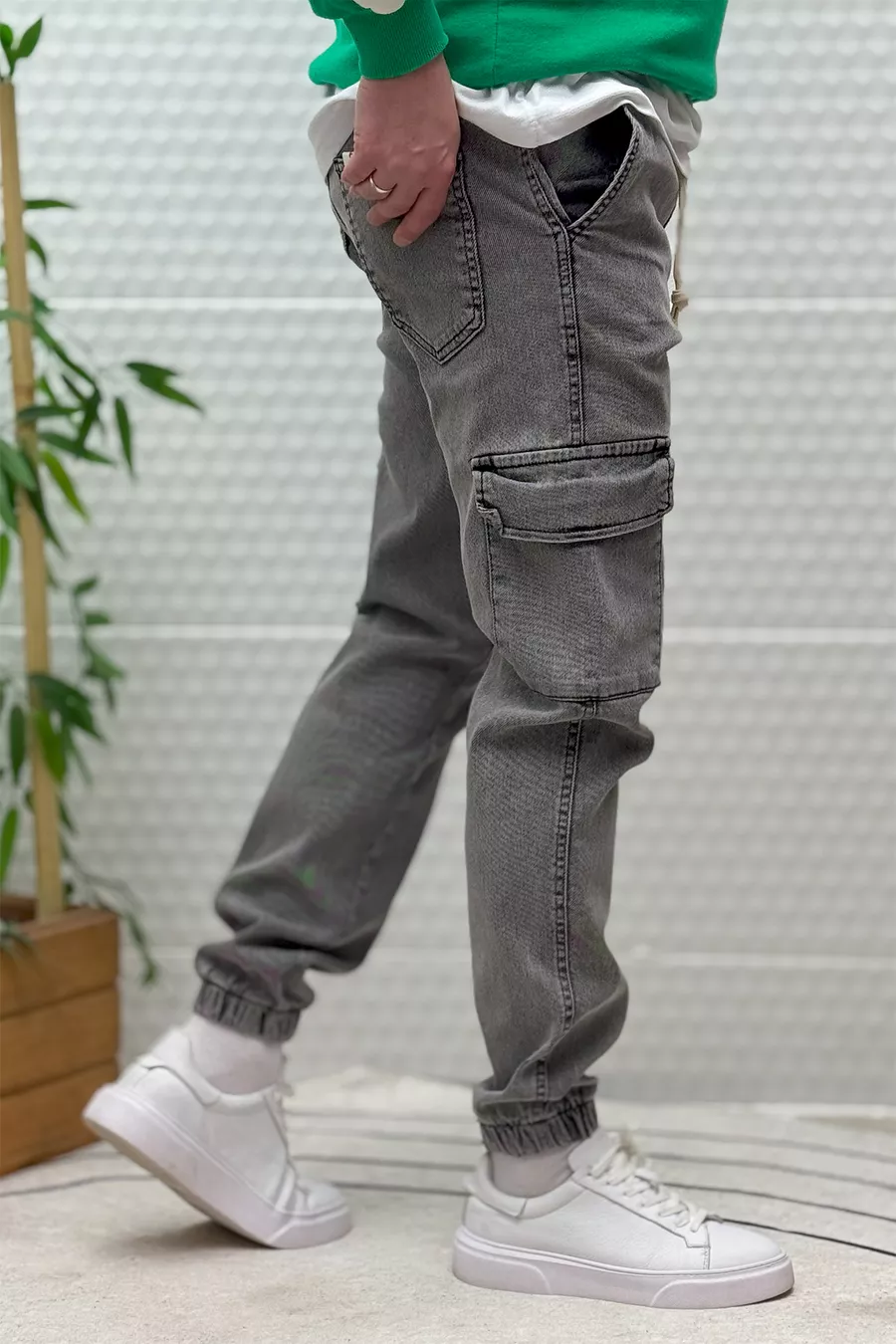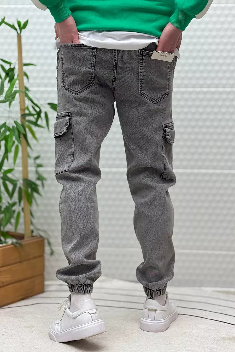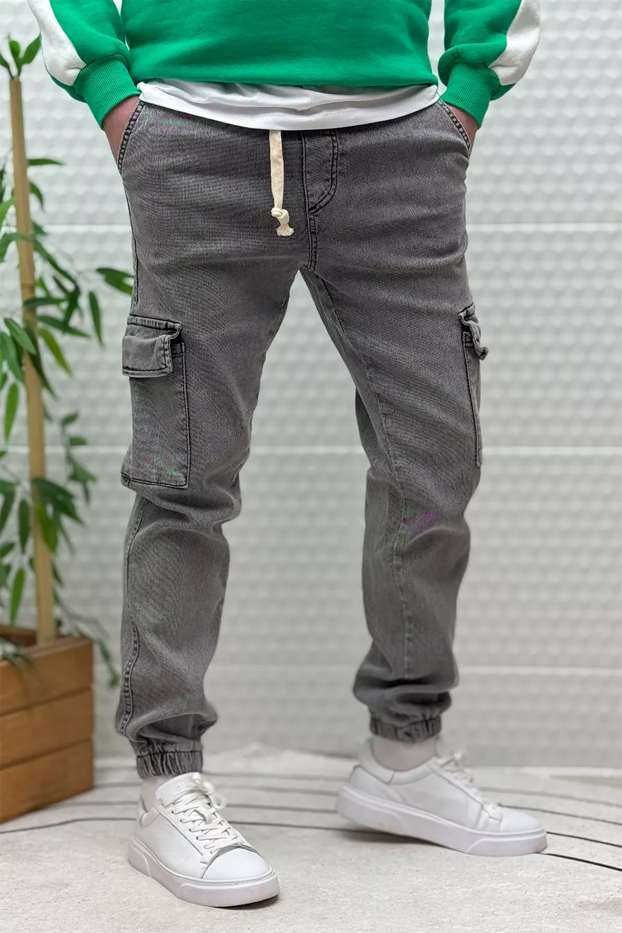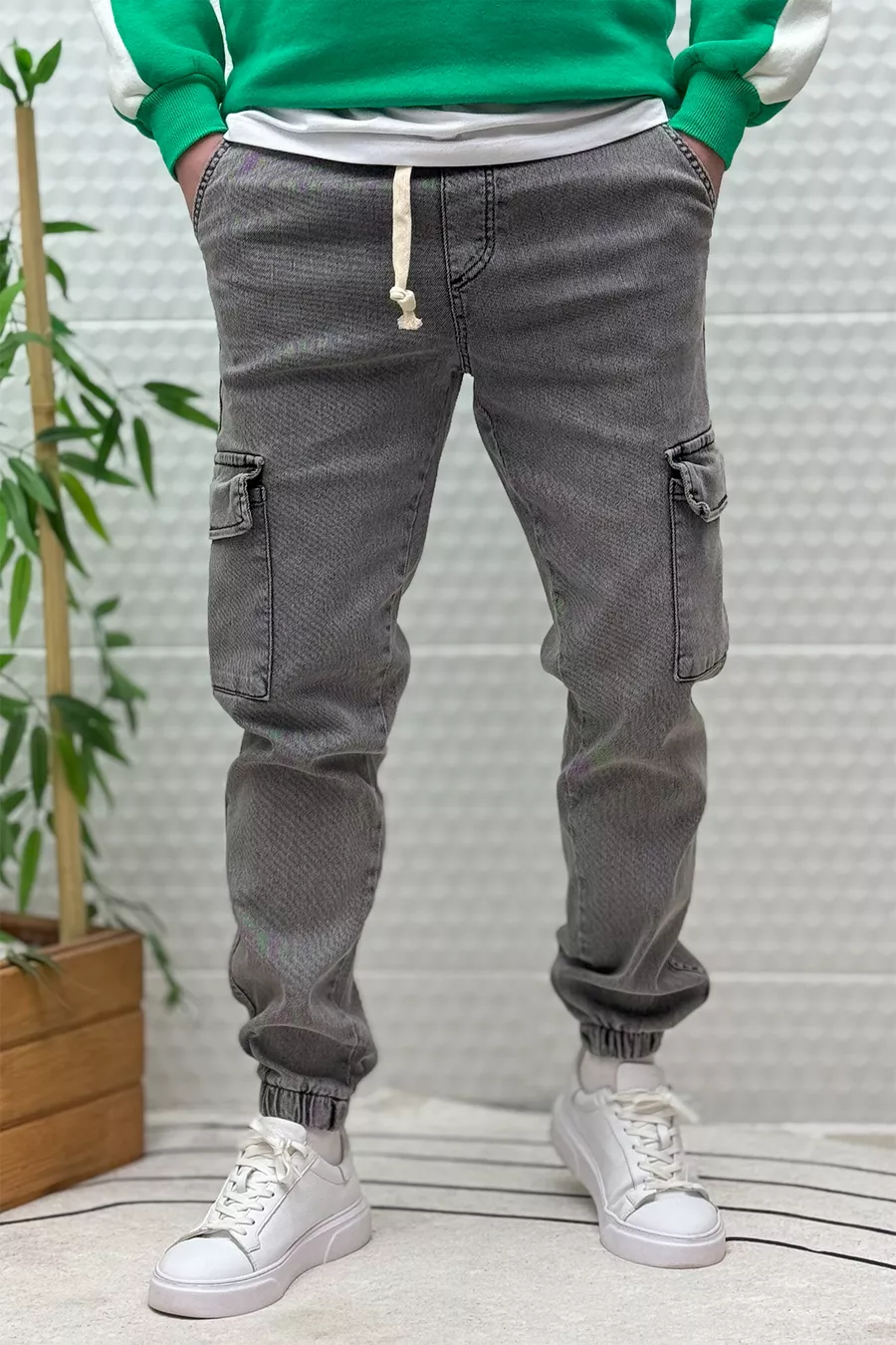 Men's Boyfriend Denim Pants with Cargo Pockets, Elastic Waist and Cuffs