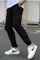 Men's Cotton Stretch Cargo Pants Black Side Pocket Pants