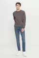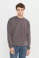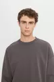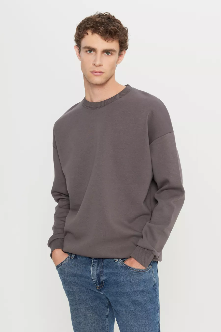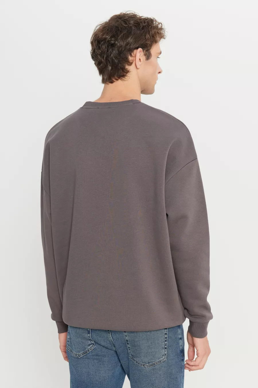 Men's Dark Gray Oversized Loose Fit Cotton Fleece-Lined 3-Ply Crew Neck Sweatshirt