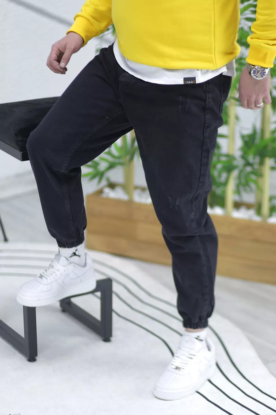 Material: Textile Fabric Type: Denim Leg Type: Elastic Hem Waist: Regular Waist Pattern: Plain Color: Black Pockets: 5 Pockets Product Detail: Hem Collection: Basic Thickness: Medium Lining: Unlined Length: Regular Silhouette: Boyfriend Occasion: Elegant Fit: Boyfriend Additional Feature: No Additional Feature Weave Type: 2-Ply Persona: Cool & Comfort Print/Embroidery Technique: No Print Belt/Strap: Without Belt Sustainability Detail: No Material Composition: 97% Cotton, 3% Lycra Washing Instructions: Type 1 Origin: TR Box Condition: No Box Package Contents: Single