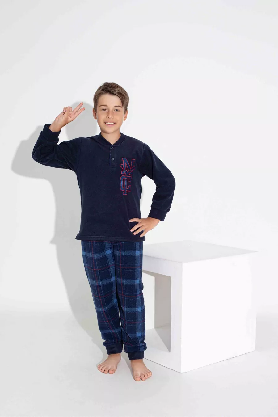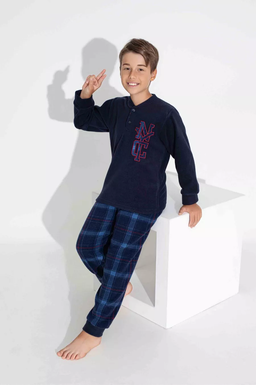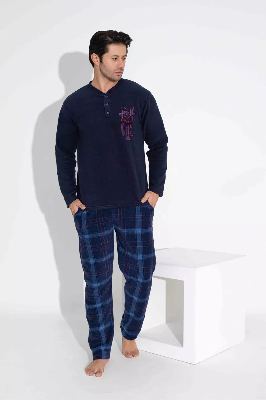 Sustainability Detail: No Sleeve Type: Long Sleeve Pattern: Plaid / Checkered Collar Type: Buttoned Collar Pant Length: Long Color: Navy Material: Polyester Product Type: Plain Product Detail: Buttoned Collection: Homewear Set: Sweatshirt-Pants Sleeve Length: Long Technique: Fleece Fit: Regular Fabric Type: Knit Waist: Regular Waist Weaving Type: Fleece Number of Pieces: 2 Silhouette: Regular Persona: Fashion Forward Occasion: Homewear Additional Feature: Licensed Material Composition: 100% Polyester Washing Instruction: T09 Cuff Type: Non-Elastic Cuff Package Contents: 2-piece Length: Long Season: Winter Origin: TR