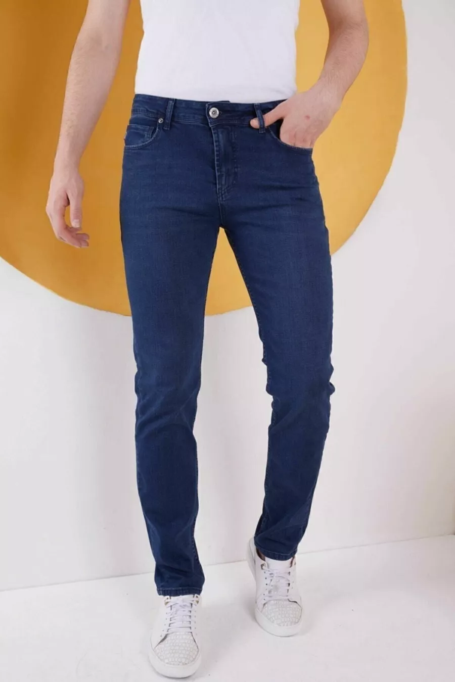 Material: Lycra Fabric Type: Woven Leg Type: Regular Waist: Normal Waist Pattern: Plain Color: Navy Blue Pocket: 5 Pockets Product Detail: Denim Fabric Collection: Denim Thickness: Medium Lining: Unlined Length: Regular Silhouette: Regular Environment: Classic Fit: Regular Additional Feature: Washed Persona: Fashion Forward Print/Embroidery Technique: No Print Belt/Strap Presence: With Belt Sustainability Detail: Yes Washing Instructions: 30°C Season: Summer Origin: TR Box Condition: No Box Package Contents: 1+