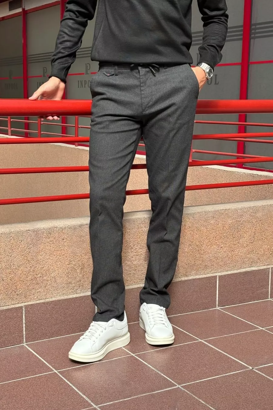 Material: Cotton - Elastane Fabric Type: Woven Leg Type: Straight Leg Waist: Regular Waist Pattern: Solid Color: Black Pocket: 4 Pockets Product Detail: Pocket Detailed Collection: Design Thickness: Thick Lining: Lined Length: Regular Silhouette: Regular Occasion: Business Fit: Regular Additional Feature: Elastic Waist Persona: Smart/Office Print/Embroidery Technique: No Print Belt/Tie Status: Drawstring Sustainability Detail: No Material Composition: 78% Cotton, 18% Polyester, 3% Elastane Washing Instructions: T09 Origin: TR Box Status: No Box