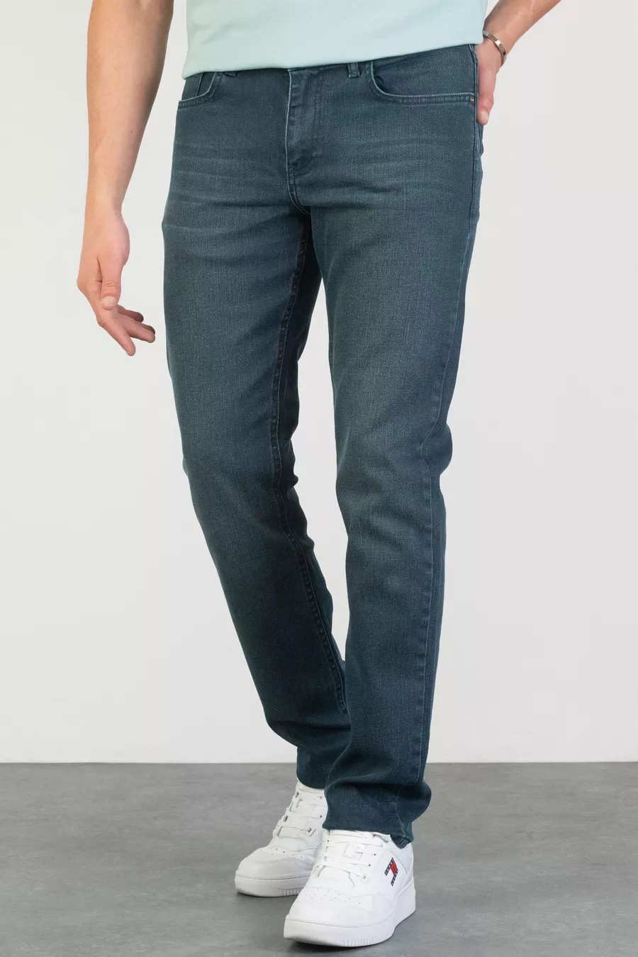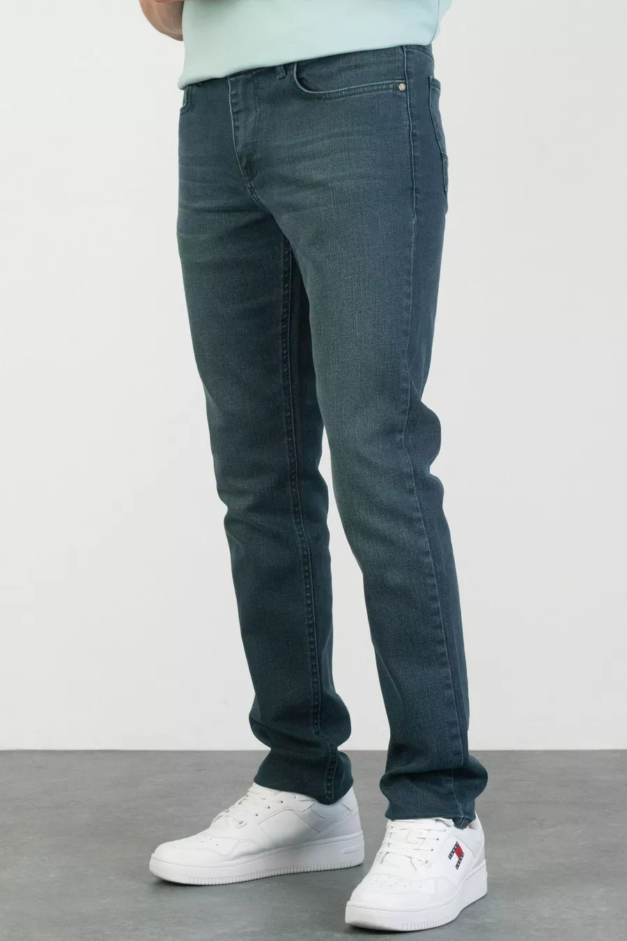 Men's Robert Olive Green Stonewashed Slim Fit Stretch Denim Jeans
