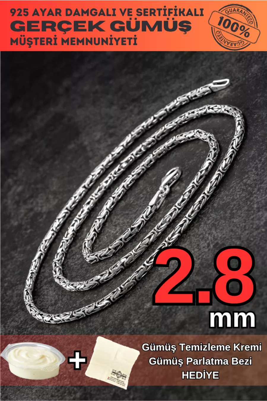 Men's Silver Necklace - Men's Silver Necklace Round King Model 2.8 Mm