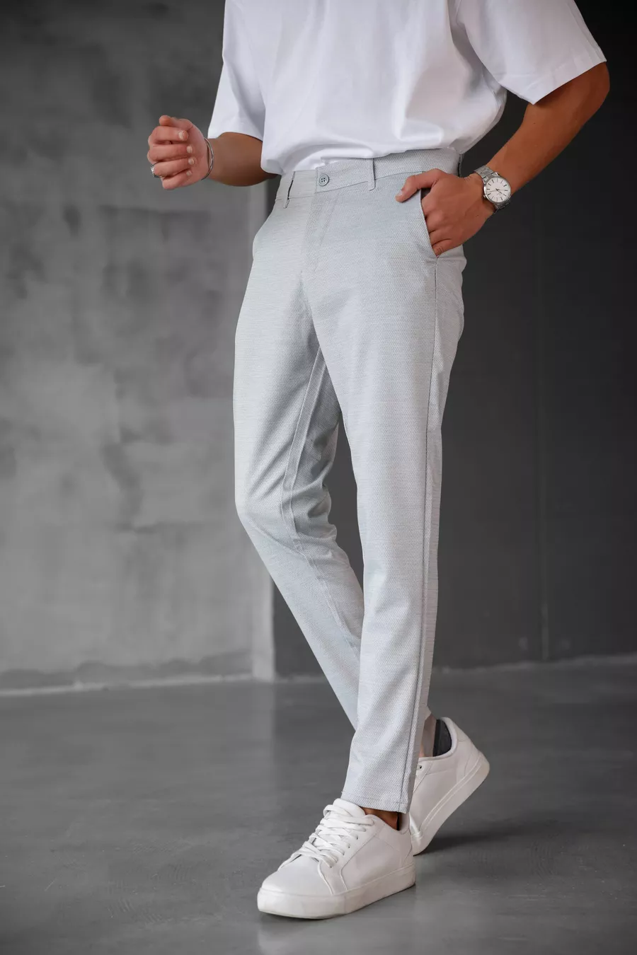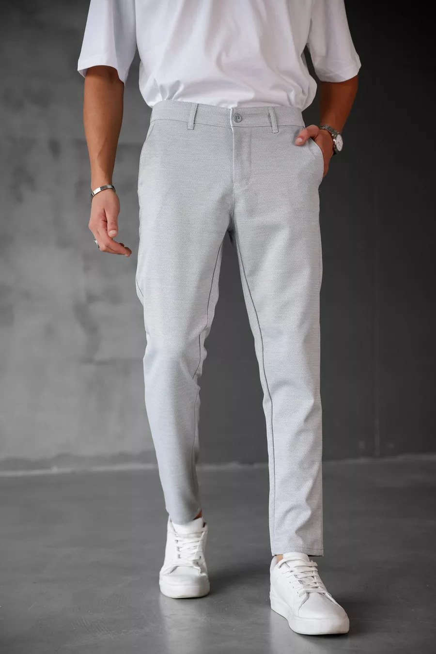 Material: Cotton - Elastane Fabric Type: Linen Leg Type: Slim Leg Waist: Regular Waist Pattern: Plain Color: Gray Pockets: 4 Pockets Product Detail: With Pocket Detail Collection: Linen Thickness: Medium Lining: Unlined Length: Regular Silhouette: Slim Occasion: Classic Fit: Slim Fit Extra Feature: Wrinkle Resistant Weave Type: Tulle Persona: Fashion Forward Print/Embroidery Technique: No Print Belt/Strap Status: Without Belt Sustainability Detail: No Material Composition: 78% Polyester, 19% Viscose, 3% Lycra Washing Instructions: T09 Box Condition: No Box Package Contents: Single