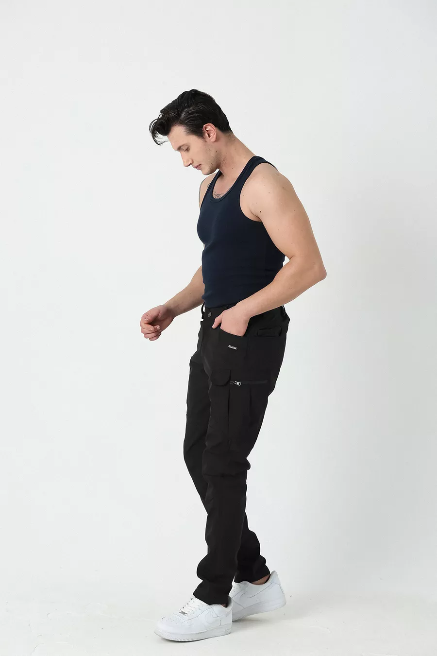 Material: Woven Fabric Type: Woven Leg Type: Straight Leg Waist: Regular Waist Pattern: Solid Color: Black Pocket: Hidden Product Details: Denim Fabric Collection: Young Thickness: Very Thick Lining: Unlined Length: Regular Silhouette: Cargo Occasion: Casual/Everyday Fit: Cargo Additional Feature: Stretch Waist Weave Type: Fleece Persona: Fashion Forward Print/Embroidery Technique: Laser Cut Belt/Strap: With Belt Sustainability Details: No Material Composition: 100% Wind Washing Instructions: T09 Season: Winter Origin: TR Box Condition: No Box Closure Type: Full Zipper Closure