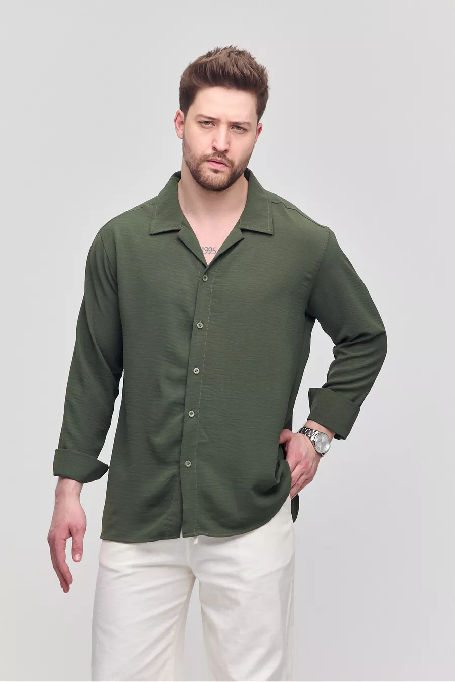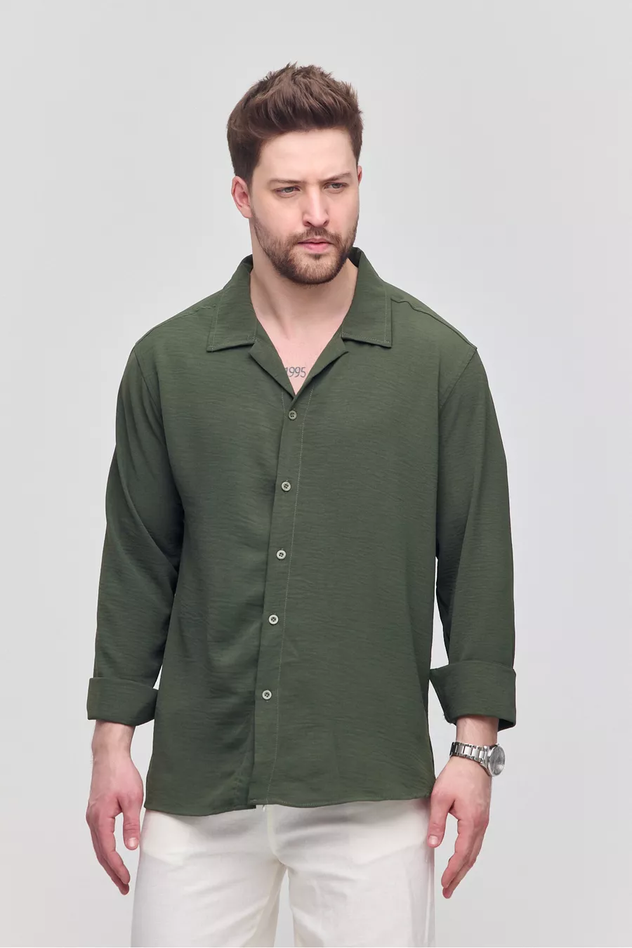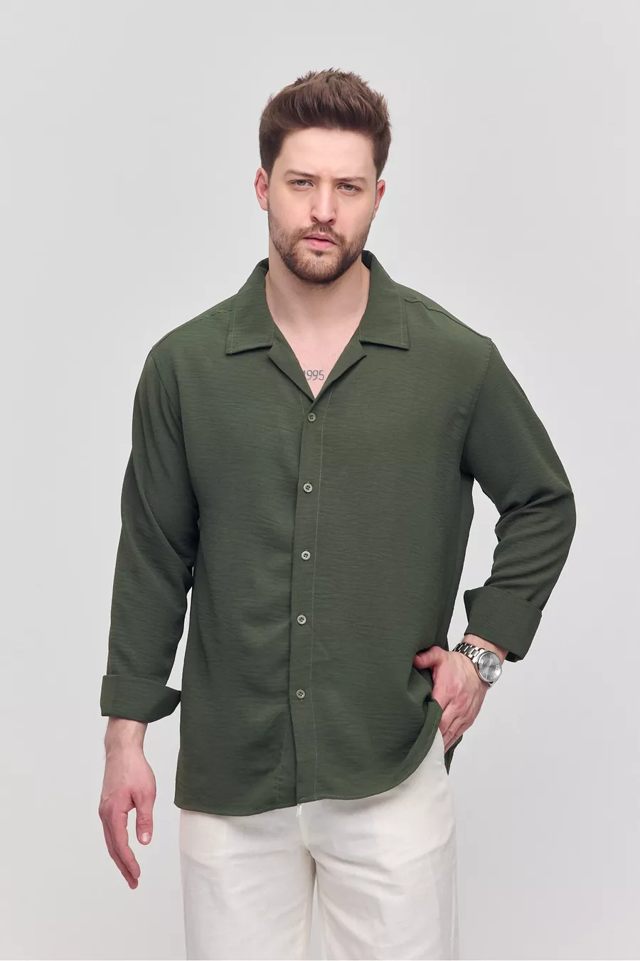 Men's Summer Shirt Khaki Aerobin Loose Fit Oversized Casual Shirt