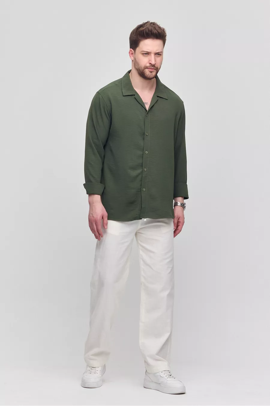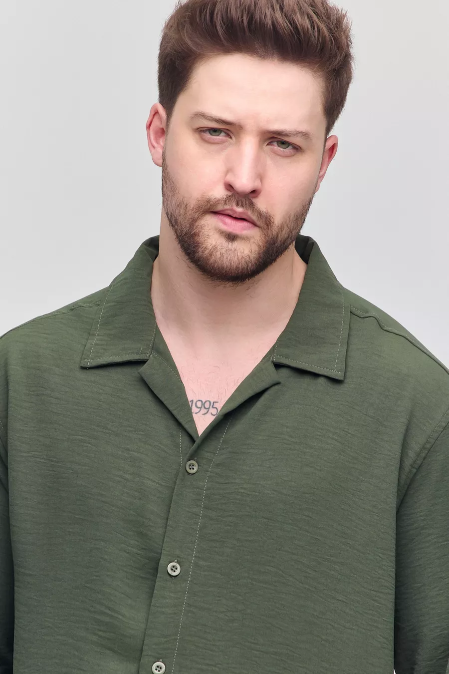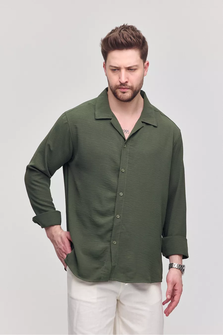 Men's Summer Shirt Khaki Aerobin Loose Fit Oversized Casual Shirt