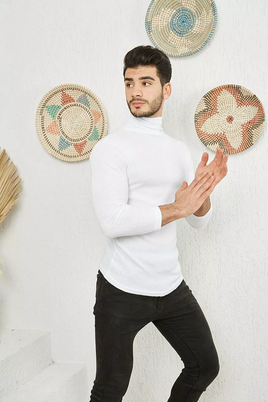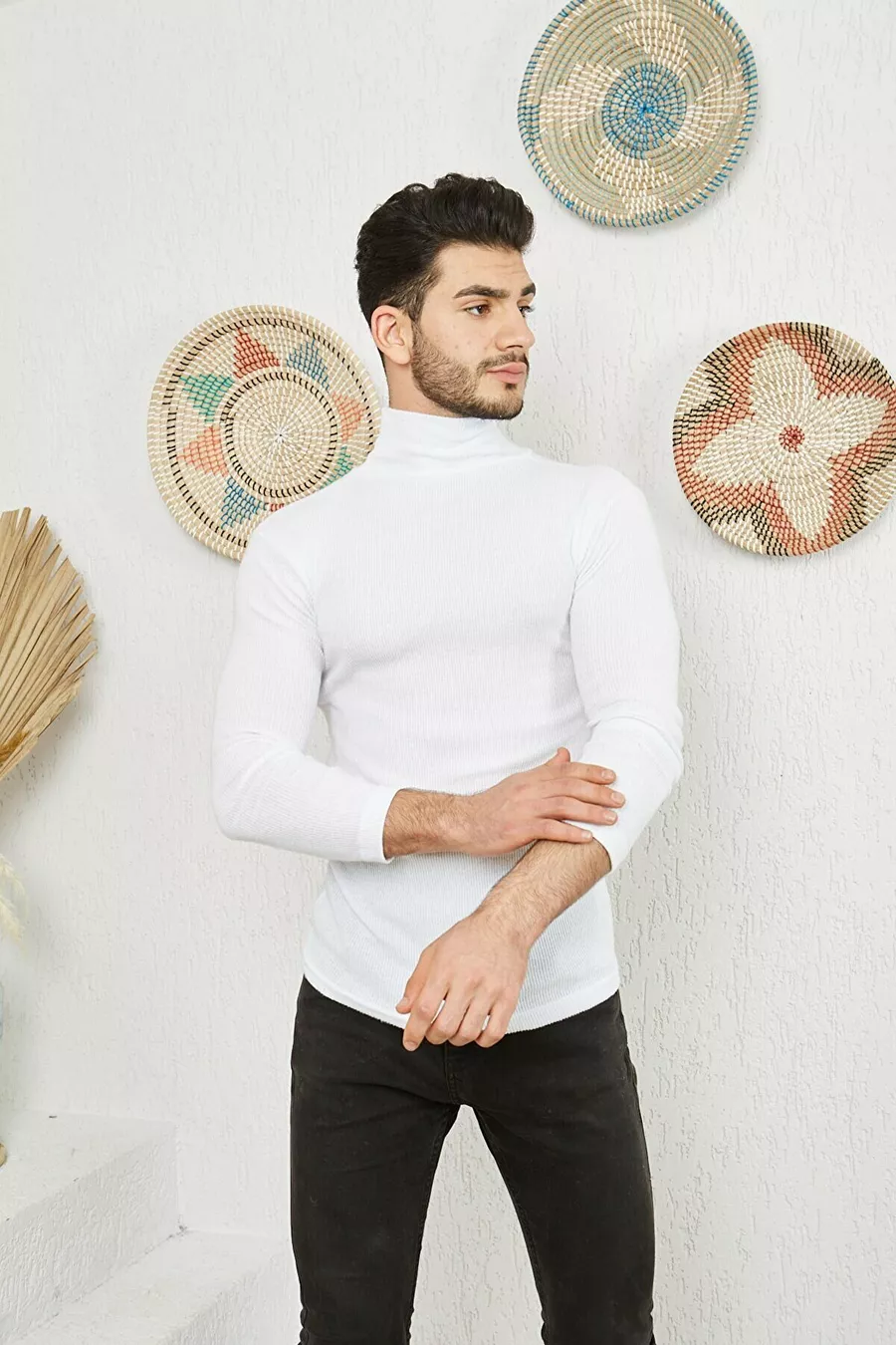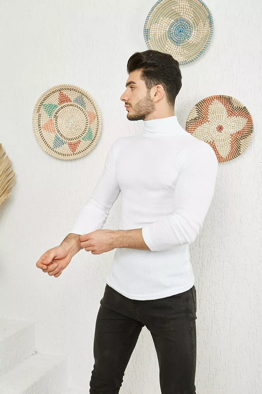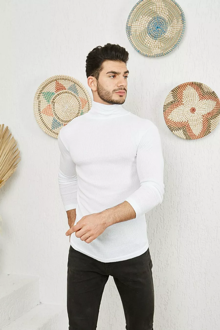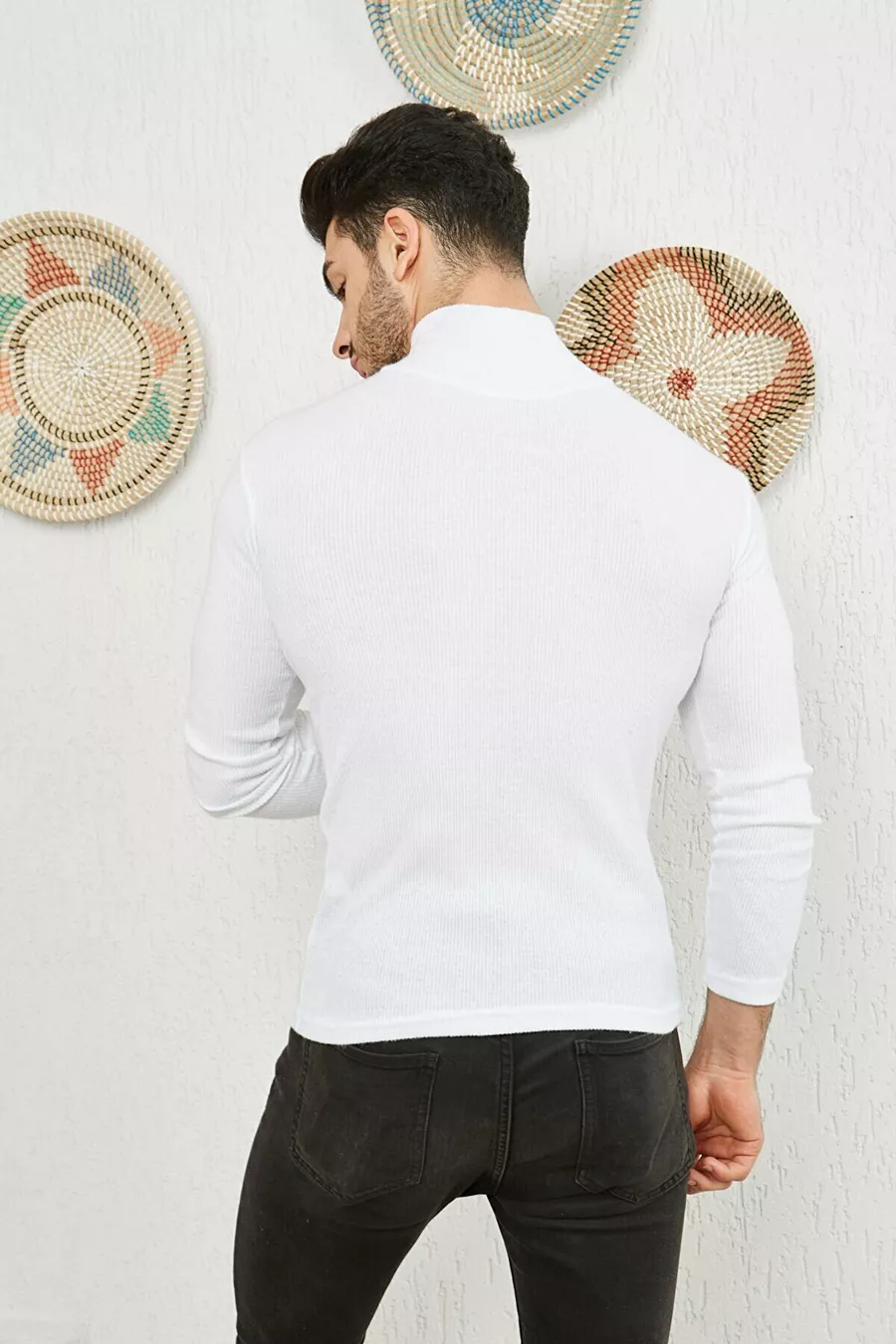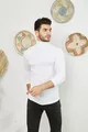 Men's White Turtleneck Knit Lycra Sweater