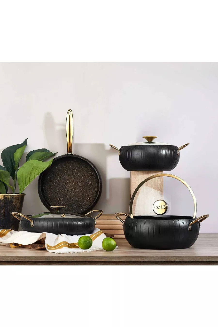 Meridian - Piece, Bio Granite, Pot, Pan, Bridal Set, Black Body, Gold Detail