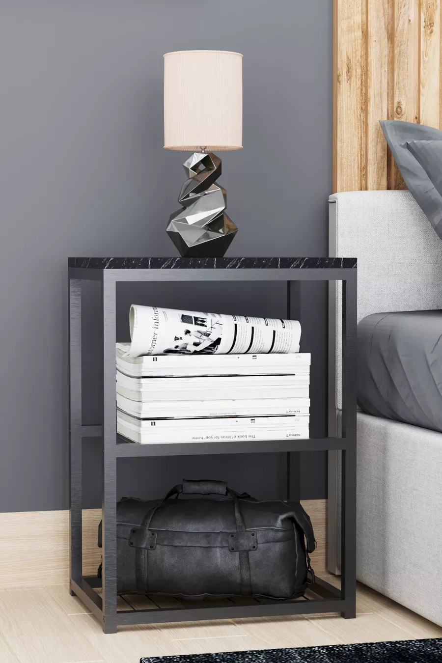 Material: Particleboard Color: Black Warranty Period: 6 Months Drawer Count: Open Shelf Height: 63 cm Width: 44 cm Depth: 29 cm Style: Modern Theme / Style: Scandinavian Origin: Turkey Feature: With Legs