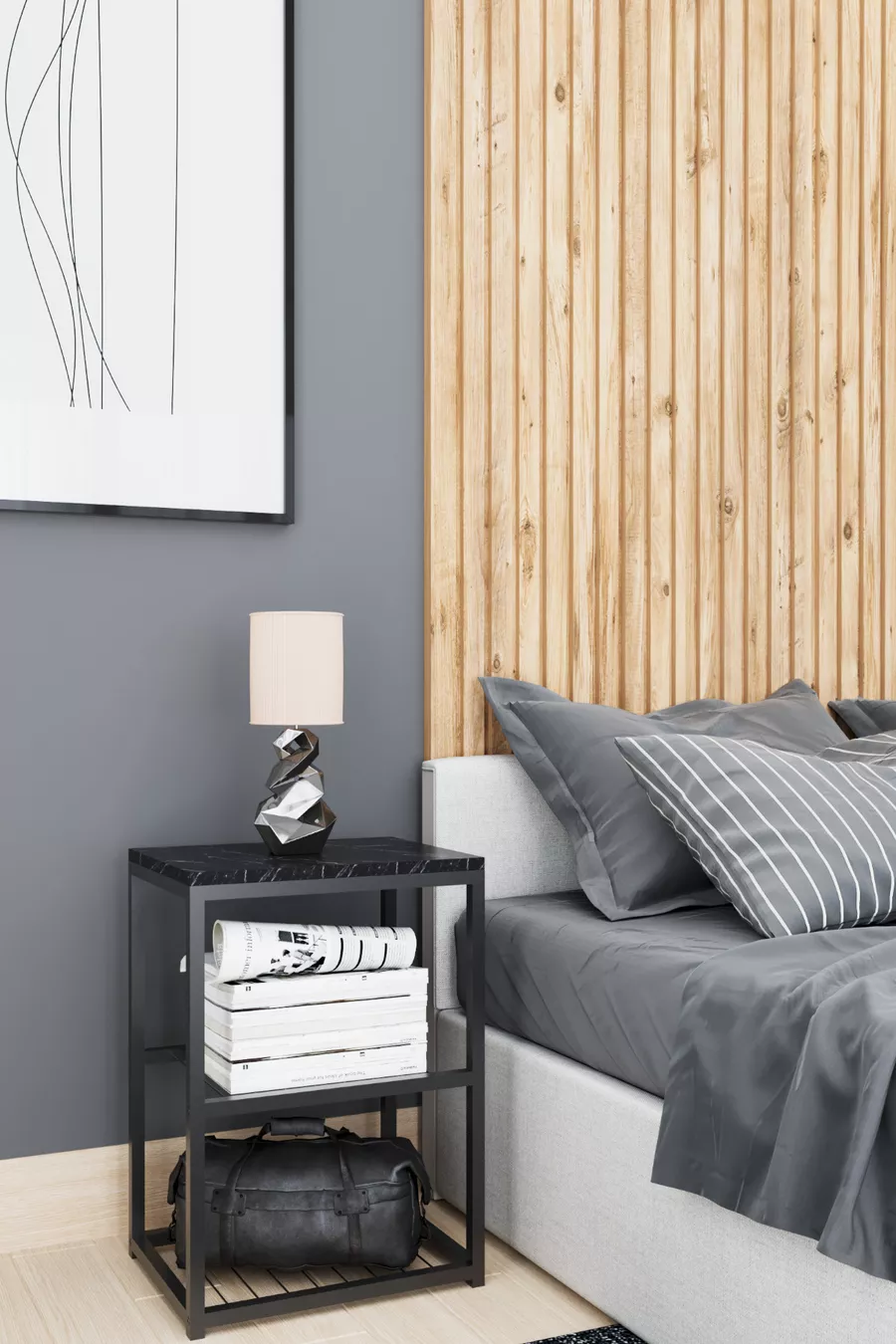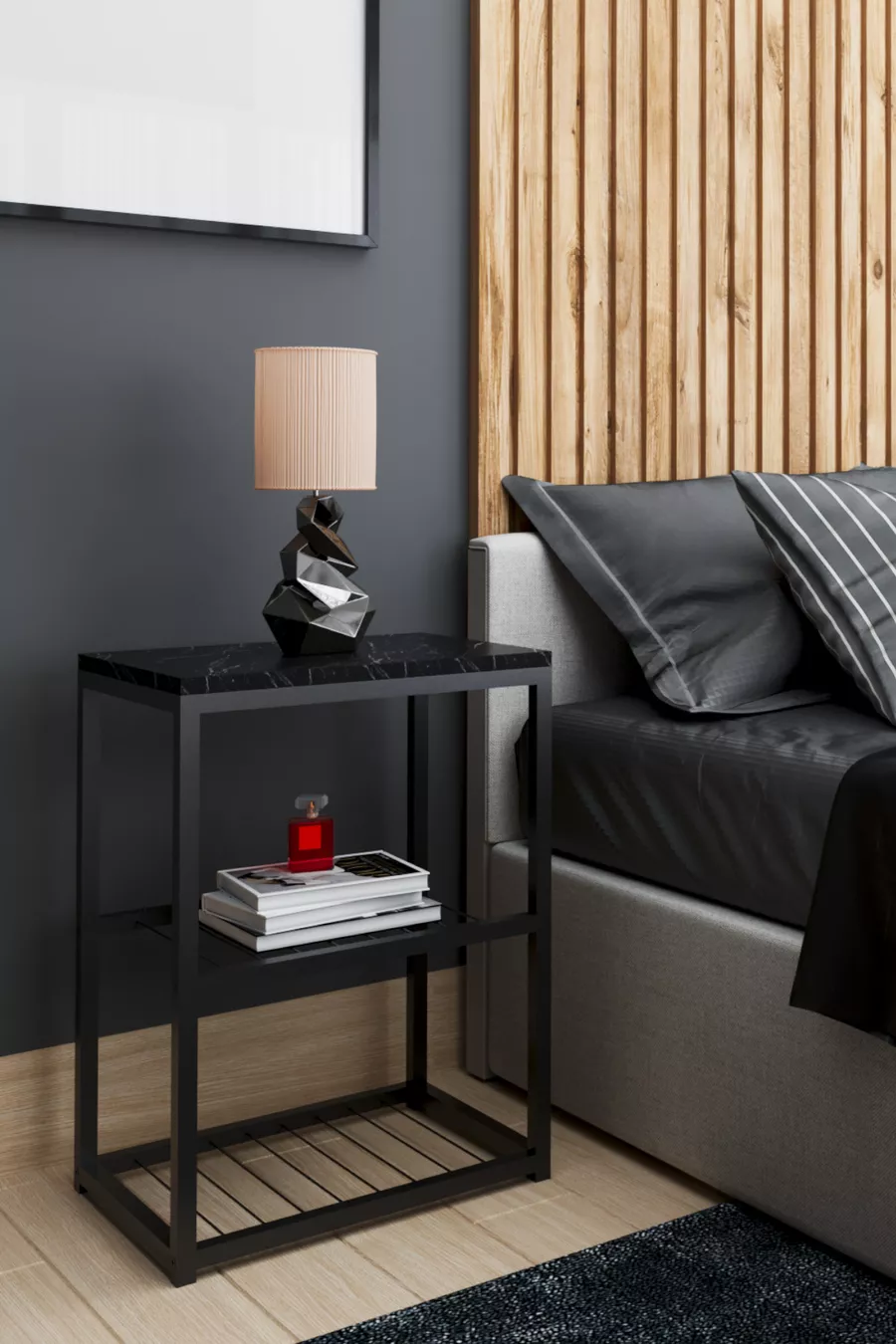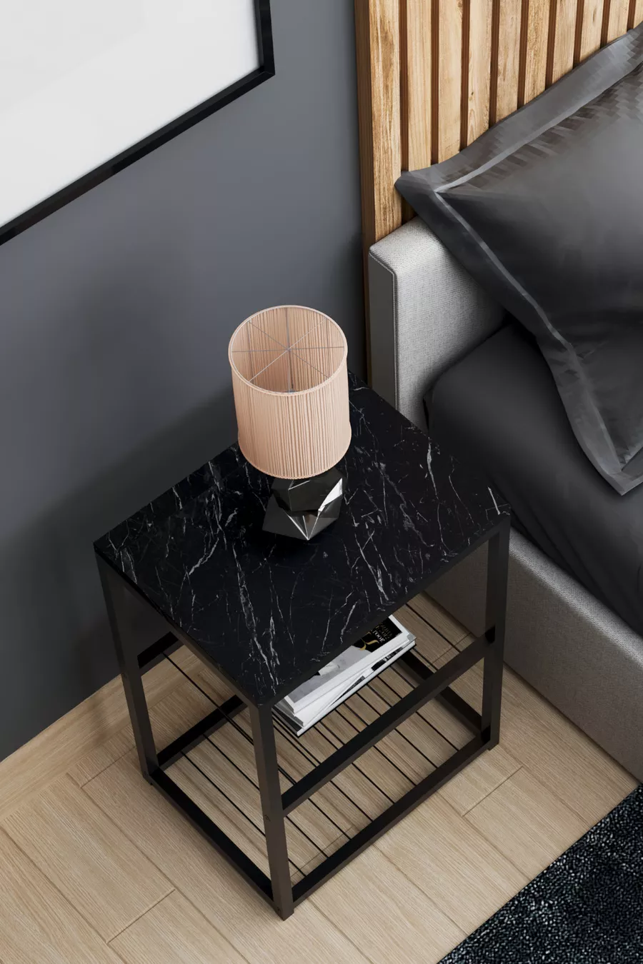 Metal Leg Decorative Wire Shelved Nightstand