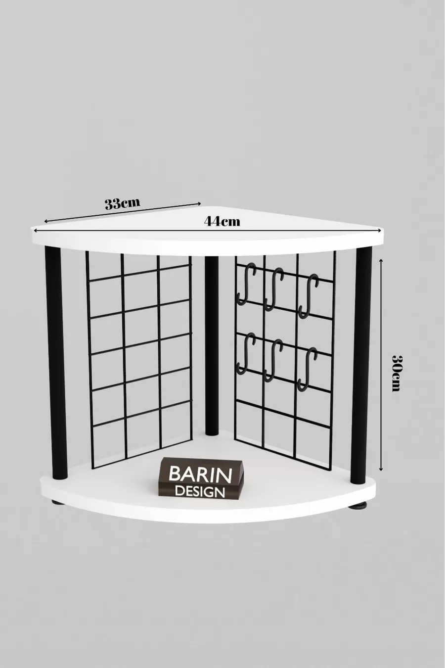 Metal Wired Coffee Corner Turntable Multipurpose Kitchen Stand Countertop Organizer Double-Layer with Hooks