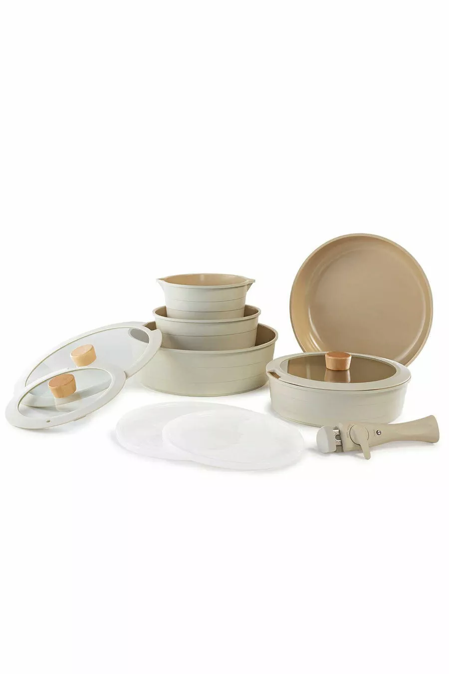 Color: Beige Size/Dimension: 16 cm Feature: BPA Free Outer Material: Aluminum Inner Material: Cast Number of Pieces: 11 Material: Cast