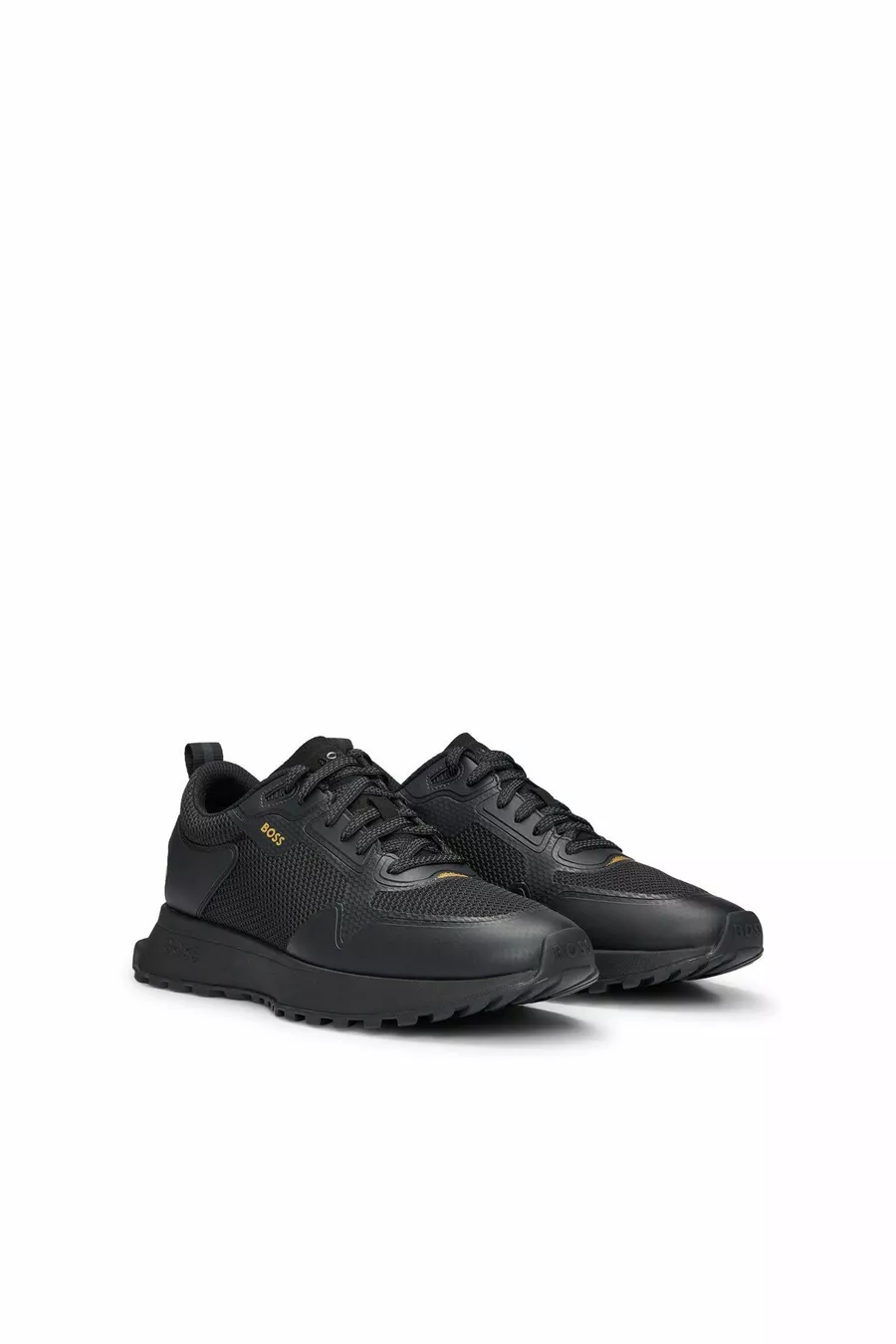 Mixed material mesh sneakers with details and logo