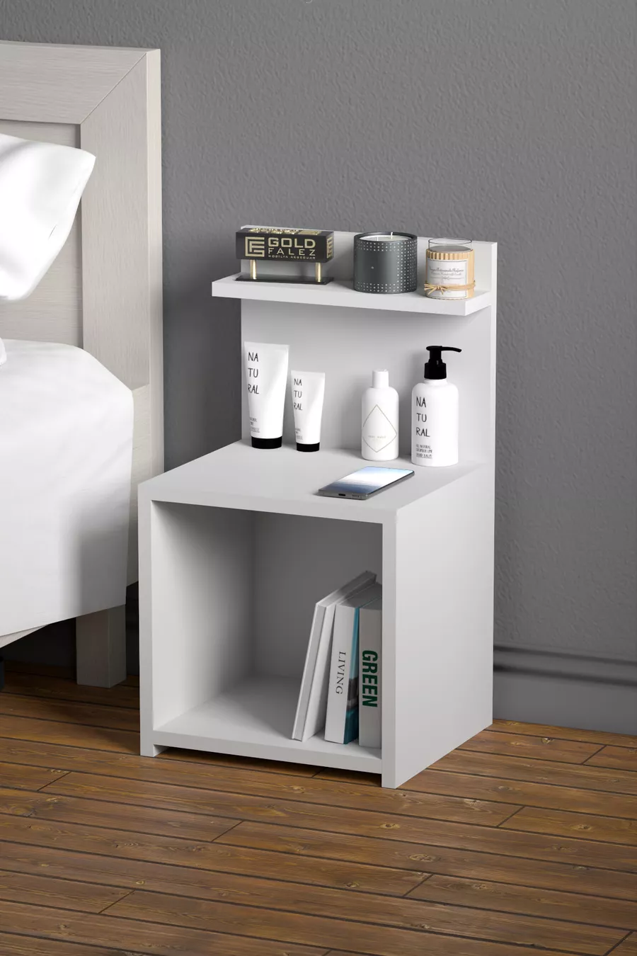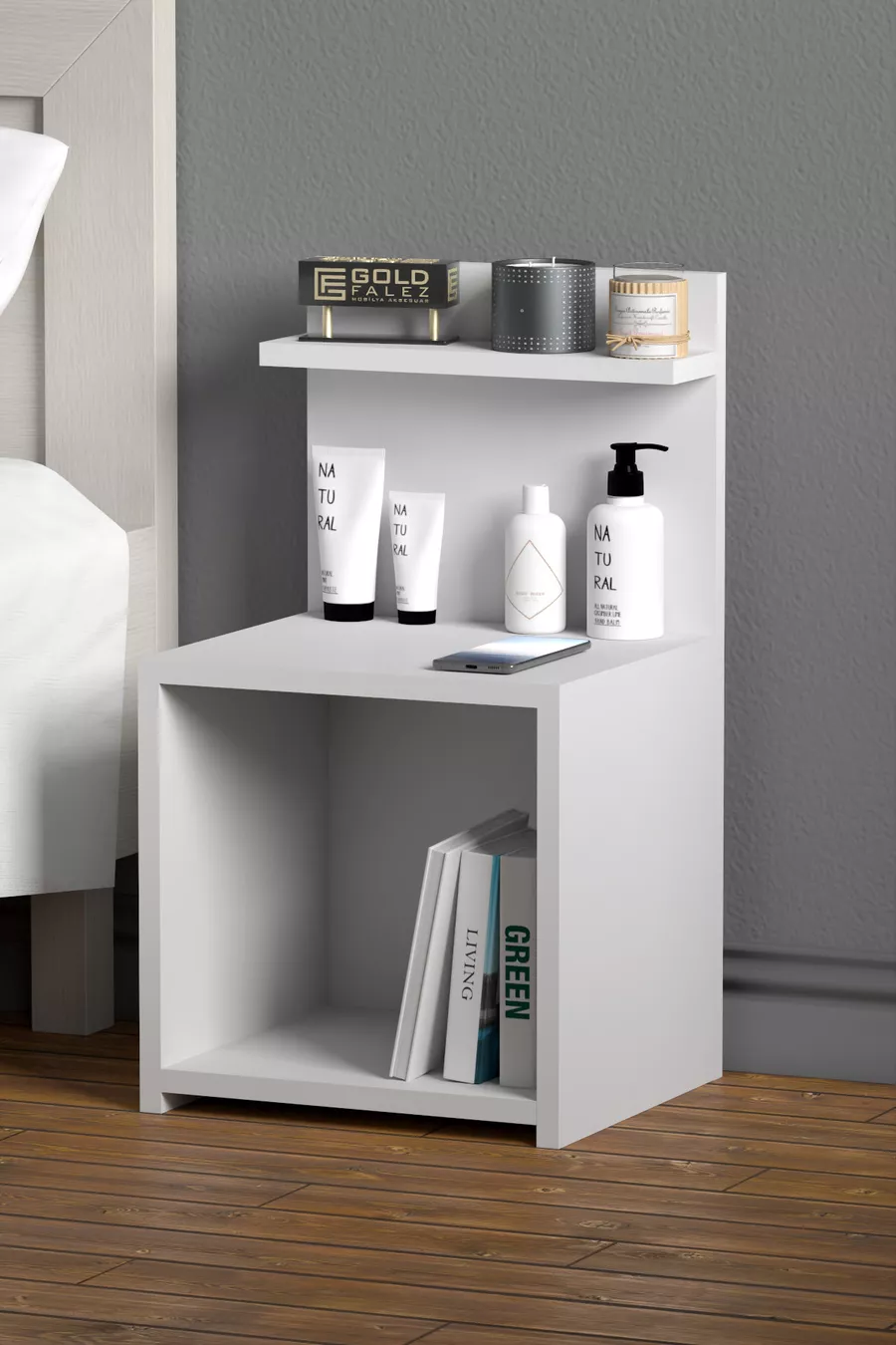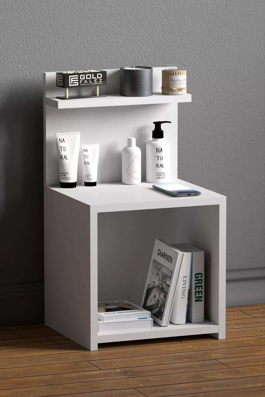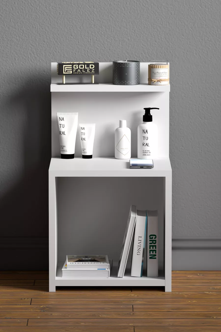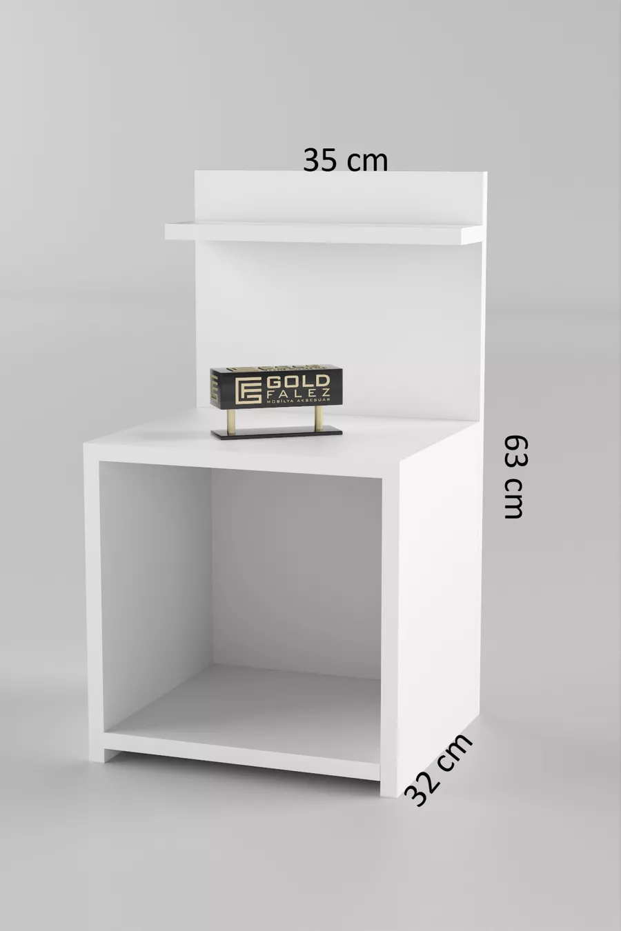 Material: Particleboard Color: White Warranty: No warranty Number of Drawers: Open Shelf Height: 63 cm Width: 35 cm Depth: 32 cm Style: Modern Theme / Style: Modern Origin: TR