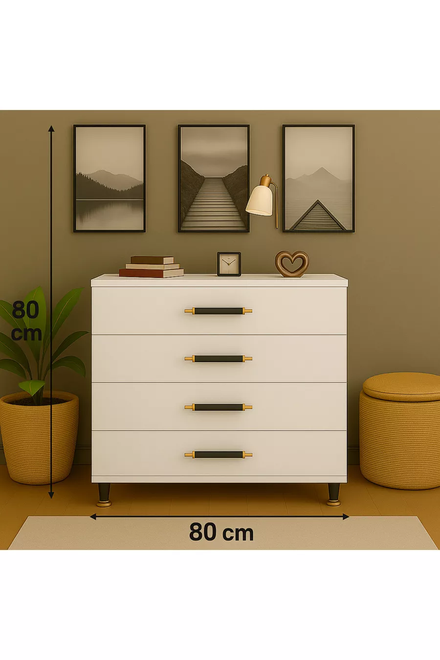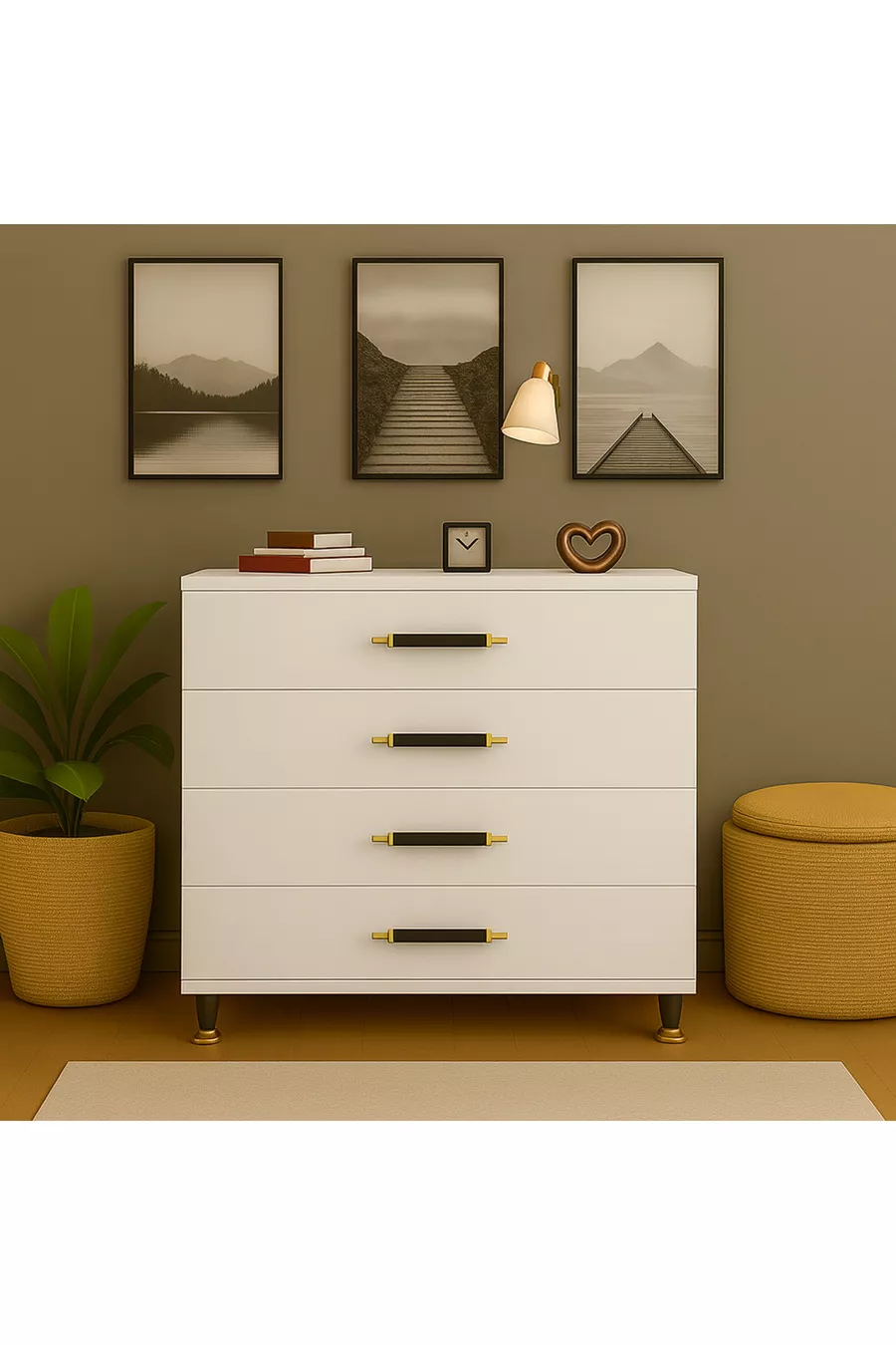 Modern Dresser with 4 Drawers and White Details – Bedroom Furniture